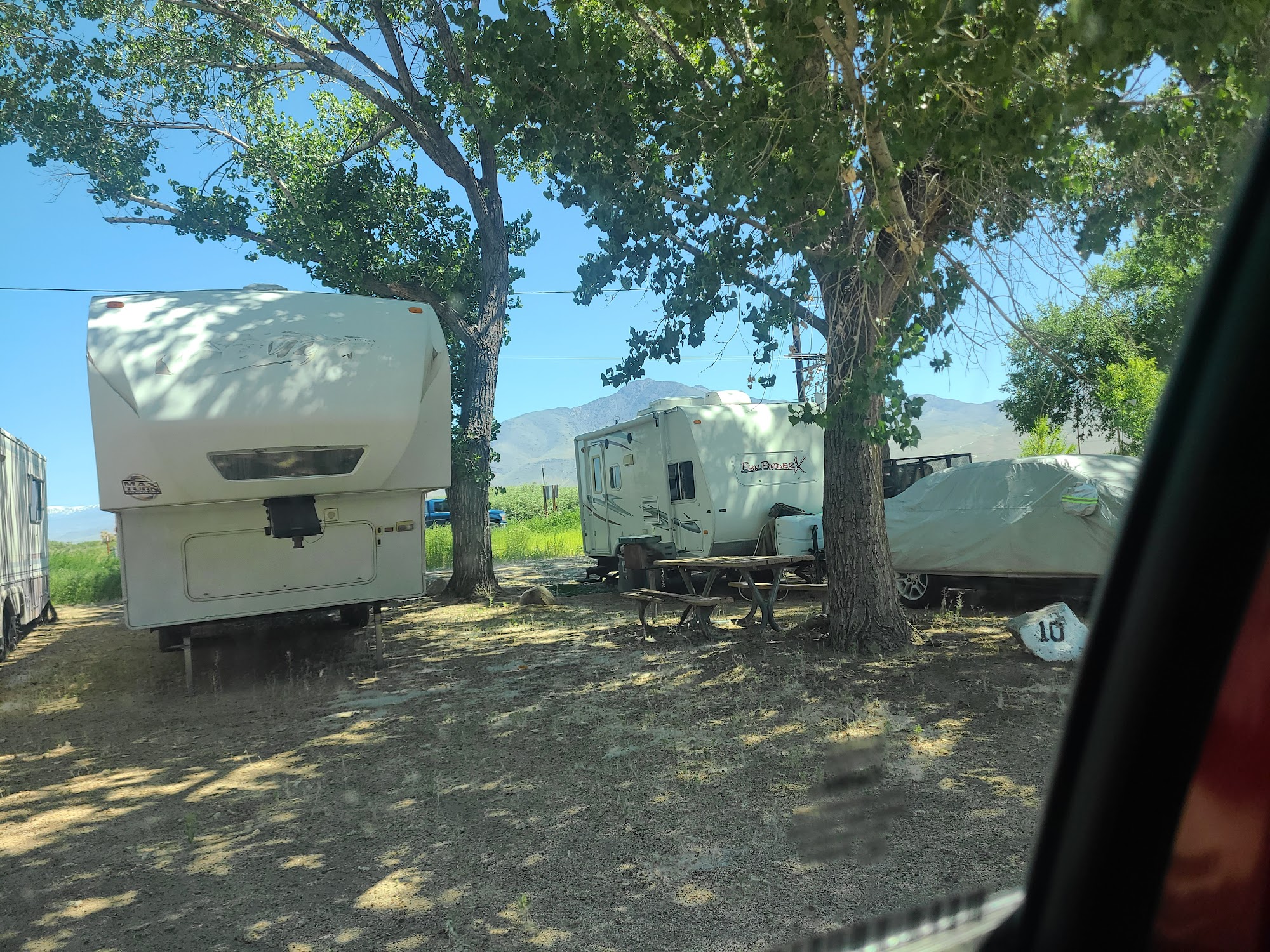 Glacier View Campground is a pretty clean, cheap, and quiet place to stay for the night, offering a nice view of the eastern Sierras. It is a smaller park with good sized pitches, suitable for RVs including larger vehicles. Overnight rates are typically $20 to $25, with an extra cost for power hookups and for hot showers, which cost $2 each. Some visitors find the pricing seems kind of pricey. The campground has basic amenities including restrooms and showers. The bathrooms are generally clean and have flush toilets with hot water in the sinks, sometimes with a heater on at night. However, the shower stalls are frequently reported as absolutely disgusting and atrocious, with significant mold, though the shower machine provides hot water. The location is very convenient when pulling into town and is walkable or bikeable to local businesses. A significant drawback is its proximity to the highway, resulting in noticeable road noise and lights that can be distracting for sleep, especially for tent camping. The campground has a mix of short-term visitors and a few longer term residents, who are described as a bit strange but generally nice and keep to themselves. The camp host is often not in until evening but can be personable and helpful. The park seems very safe. It serves as an okay stop and a practical base for nearby activities like hiking in the Sierra Nevada Mountains and visiting local restaurants.