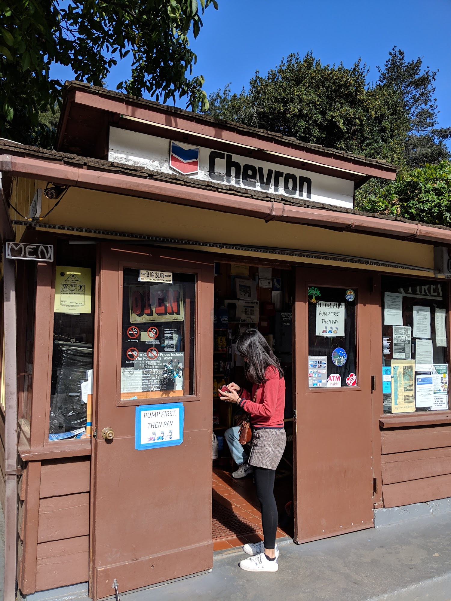 Chevron Big Sur is a gas station on the Pacific Coast Highway. Reviewers note it has the highest gas prices, which are very expensive and a tourist trap. Many advise avoiding it to fill up if possible. However, its location in Big Sur among redwood trees makes it a quaint and unique stop on a road trip, which some find cool to visit. The high prices are somewhat expected for the area.