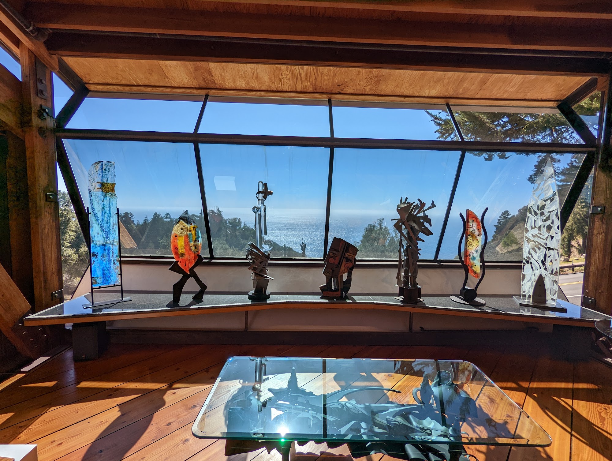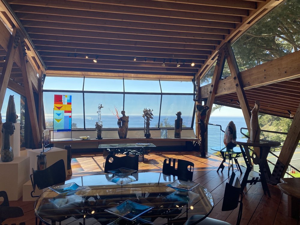 Hawthorne Gallery, established in 1995 on the Big Sur coastline, is a beautiful and peaceful place to experience art. Designed by the famous architect Mickey Meunnig, the gallery features works from over 20 talented artists, including the Hawthorne family. Visitors can see a diverse range of art, from Albert Paley’s forged steel designs and Gregory Hawthorne’s contemporary paintings to the woodcarvings of Barbara Spring. The gallery’s building is as "California" as it gets, with wood and glass walls that let the outdoors in and offer stunning views of the Pacific coastline. The Hawthorne family, who started the gallery, is deeply passionate about their art and visitors. It is a family-run place where love and creativity shine through every piece. Guests often remark on the friendly staff, who are knowledgeable and enthusiastic about the artworks. The gallery also offers unique jewelry, sculptures, metalwork, and even furniture, making it worth a special drive. The upstairs area features sections of glass floor and beautiful views of the Pacific. Overall, Hawthorne Gallery is an iconic Big Sur institution that touches all senses, providing a memorable experience filled with beautiful art and warm hospitality.