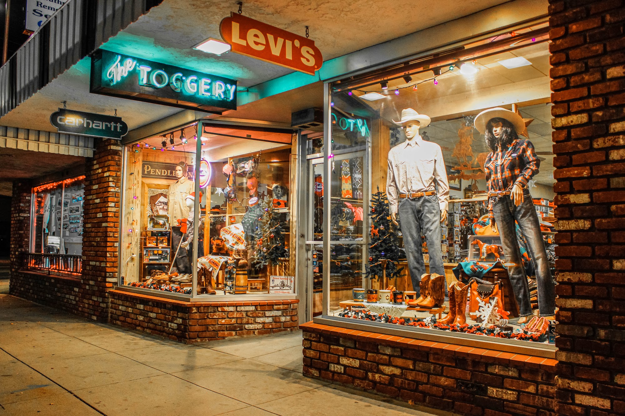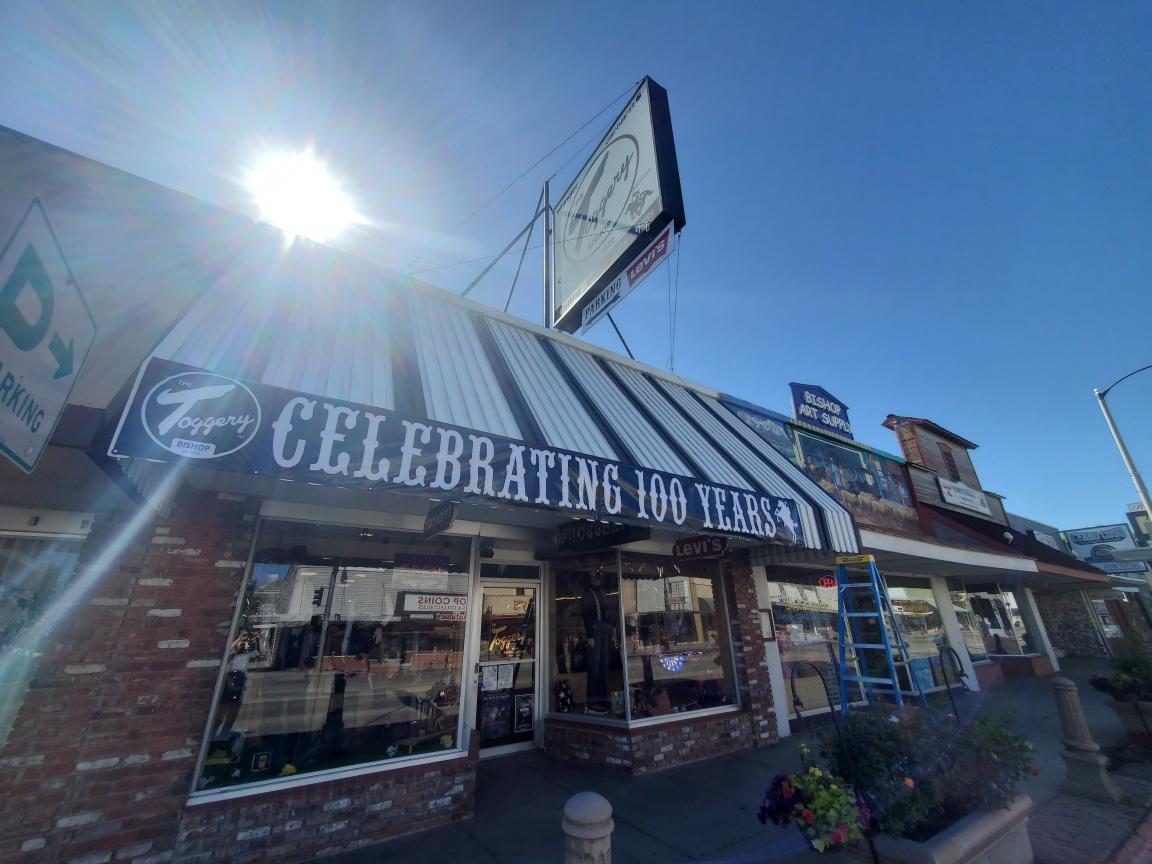 The Toggery is a 101 year old store nestled in downtown Bishop. It has an amazing selection of name brands, including country western wear, work clothes, tuxedos, and warm wool clothing like socks, jeans, shirts, and thick Pendleton sweaters. They offer everything from work boots and Wranglers to 501 Levi's, shirts, jackets, western riding boots, and moccasins. The service is great, friendly, knowledgeable, and impeccable, with help finding fits and items within your budget. They have a loyal local customer base and are also a popular stop for vacationers passing through, providing a trusted hometown experience.