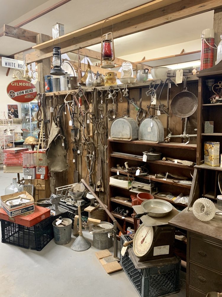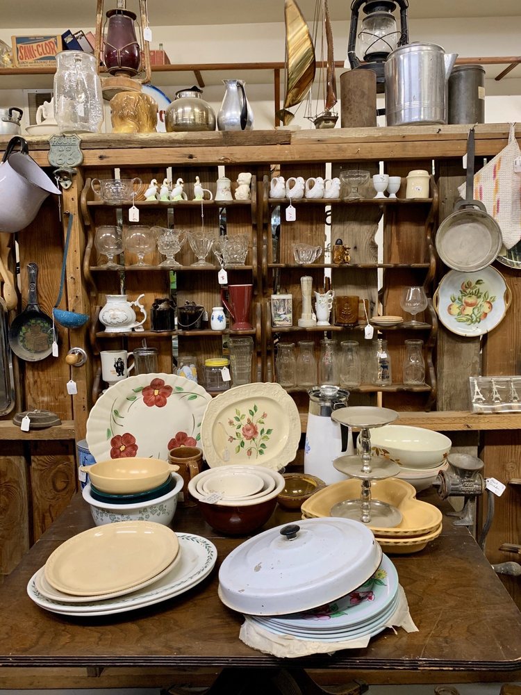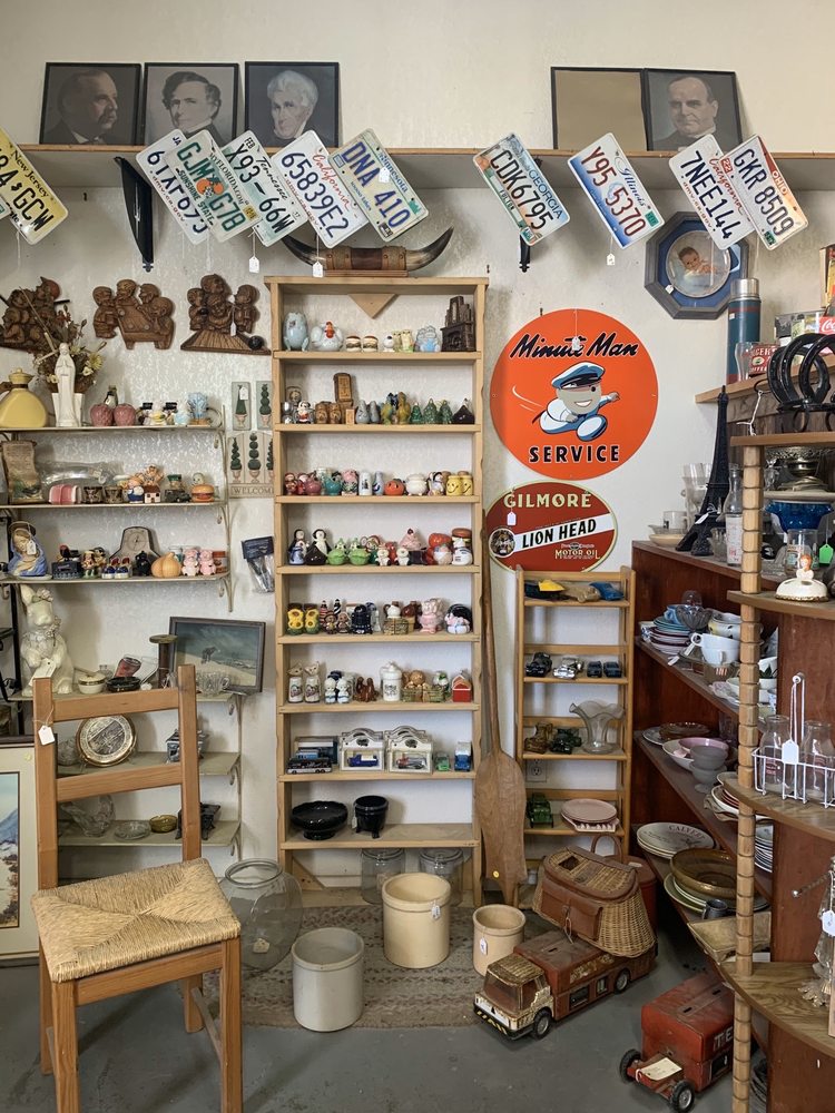 Antiques is a fun and interesting shop with a little bit of everything. The friendly staff are helpful and make visitors feel welcome. The collection includes a variety of items such as vintage glass (carnival, depression, and milk), kitchen goods, vintage albums, and collectibles like military surplus and frontier mining memorabilia. The shop is well-displayed, with a great selection of metal signage and nostalgic treasures that appeal to collectors. Parking is easy, and the shop offers a nostalgic atmosphere reminiscent of flea markets. While some prices may be high and the size of the store smaller than expected, it's still worth a visit for those interested in antiques and vintage items. Nearby, a garage with a fascinating collection of memorabilia is also open, adding to the overall enjoyable experience.