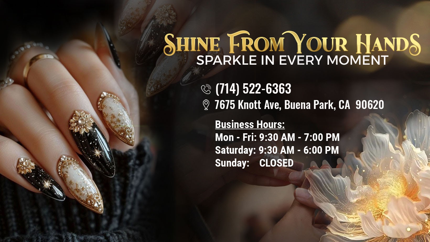 At Magic Nails in Buena Park, California, we redefine nail care, blending expertise with creativity. Our skilled team specializes in magical nail art, from intricate designs to trendy extensions. Immerse yourself in a haven of pampering, where every visit is a journey into enchantment. We prioritize quality, professionalism, and unique nail experiences. Elevate your style with Magic Nails – where nails become works of art. Book now for a touch of magic!