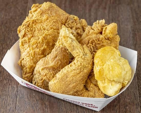 Krispy Krunchy Chicken® (KKC), founded in Louisiana in 1989, is a quick-serve solution for convenience stores, truck stops, universities, casinos, and big box retailers across the U.S. Every piece of our chicken and tenders is marinaded in a proprietary mix of mild but oh-so-flavorful spices, then double hand-breaded and fried to golden perfection. We serve it with the best sides around and most every order comes with a little bit of crowning glory – a freshly baked biscuit, generously drizzled with pure honey goodness.