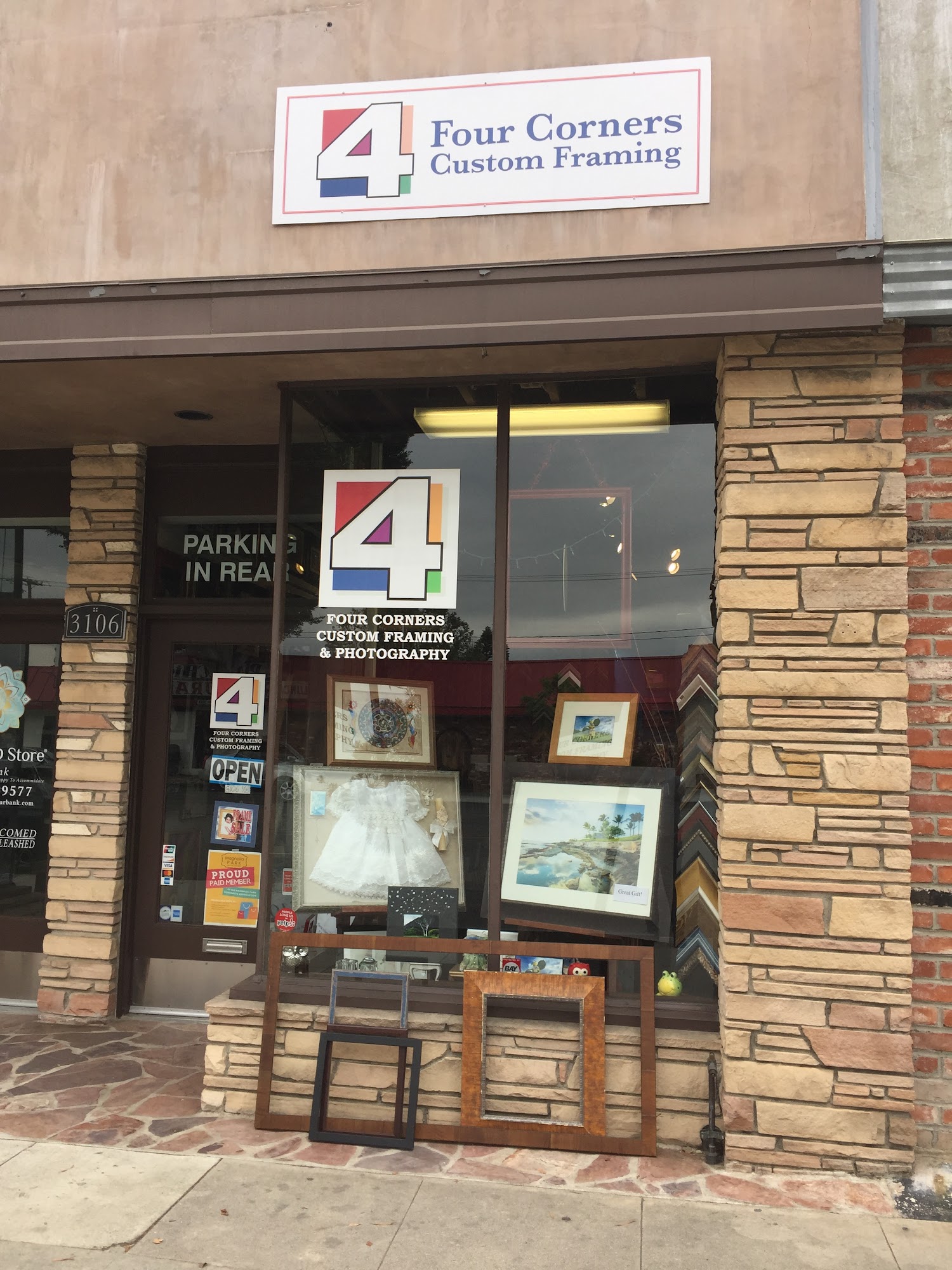 Four Corners Custom Framing is a family-owned business that has been serving the community since 1996. They offer a wide selection of moulding and mats, and they handle various custom framing services including poster mounting, shadow boxing, multi-opening mats, canvas stretching, oversized pieces, and recently, photography framing. All work is done on-site with great care, ensuring each piece is treated with pride. Customers appreciate the shop’s ability to handle complex projects, such as multi-picture collages with tricky measurements, and praise the quality of the final product. Many highlight the quick turnaround time, often completing work within five days, and feel the prices are fair for the high-quality craftsmanship. The staff, especially Catalina, is described as friendly, creative, and helpful, offering ideas to enhance the presentation and helping customers feel comfortable and valued. The business has a reputation for excellent service, attention to detail, and the ability to preserve important memories, such as diplomas, family photos, and artwork. Overall, Four Corners Custom Framing is highly recommended for its craftsmanship, warm customer service, and dedication to creating beautiful, lasting framed pieces.