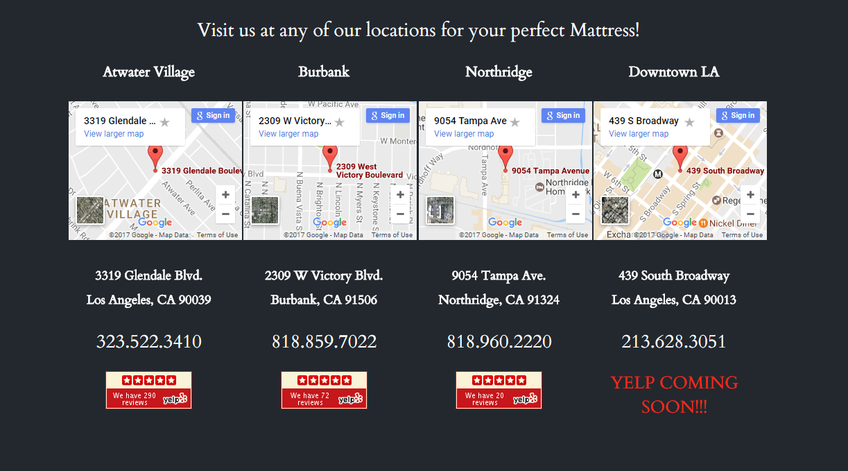 Mattress Central Stores are family-owned and operated mattress stores in Los Angeles. Owners Sev and Vince are actively involved and ensure all customers experience the Mattress Central difference. The stores offer a relaxed, honest, educational, and low-pressure approach to buying a mattress. Mattress Central listens to customers and sets high standards in the industry, providing unmatched services and incredible deals on quality products. Proudly serving the community since 2009, Mattress Central has grown to be the highest-rated mattress store in Los Angeles. Customers praise the store's friendly and heroic staff, particularly Aaron, who is described as knowledgeable, patient, and respectful of budgets. Reviewers highlight the store's competitive pricing, beating other companies by hundreds of dollars, and its LGBTQ-friendly atmosphere. Customers appreciate the no-pressure sales approach and the ability to find the perfect mattress for their unique needs. Overall, Mattress Central offers an excellent shopping experience, with customers highly recommending the store for anyone looking to buy a new mattress.