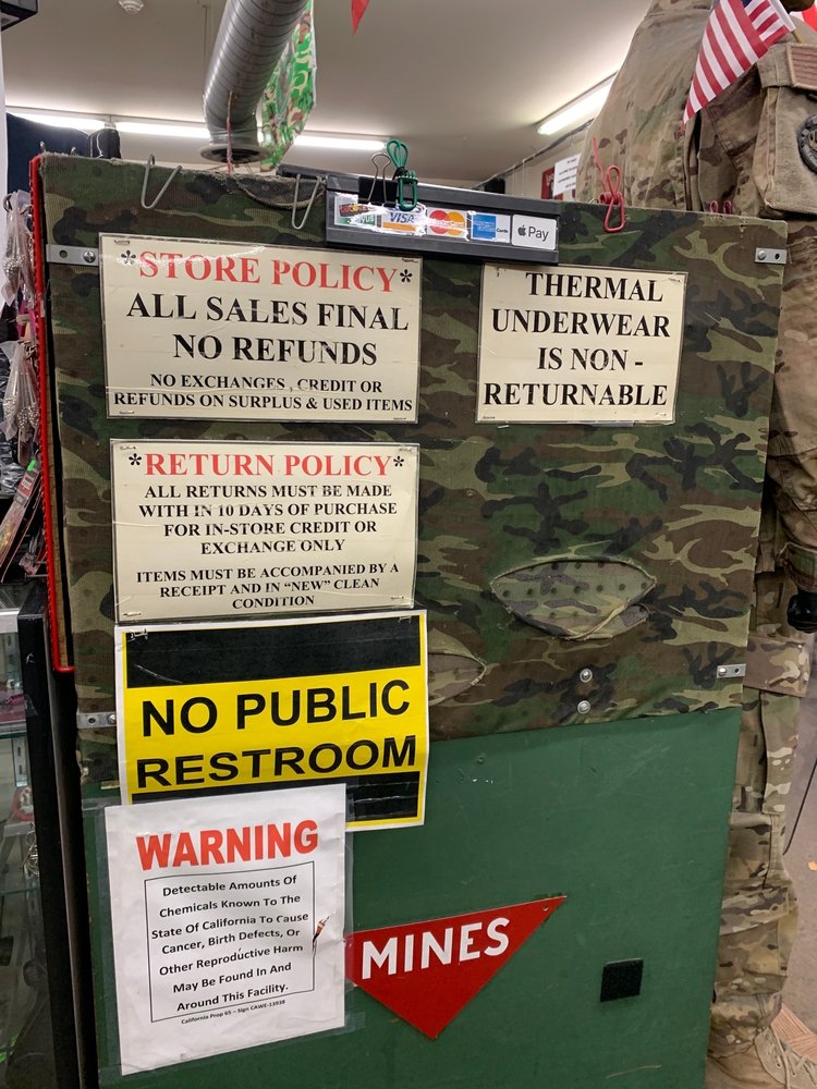 The Supply Sergeant is a beloved store known for its wide selection of outdoor items, heavy-duty work clothes, and military gear. Customers appreciate the great prices and the helpful staff, who go out of their way to assist in sourcing items that may not be in stock. Many consider it a hidden gem in the valley, making it a must-visit for anyone interested in outdoor and military apparel. While some reviews express sadness over the store's closure in Bakersfield, the memories of the excellent service and unique products remain cherished. Shoppers have reported finding amazing items, with the staff being friendly and patient, even when assisting with price inquiries. Overall, The Supply Sergeant is highly recommended for its cool items and exceptional customer service.