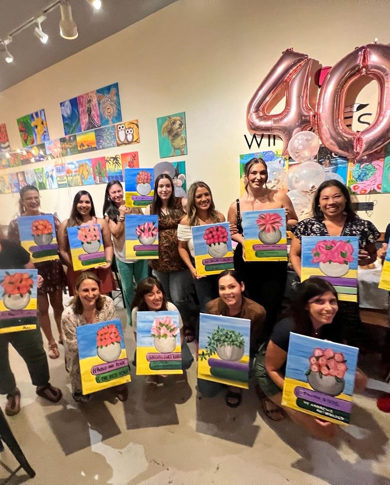 What’s better than toasting to a good time with friends? To us, not much. Wine & Design is a fun way to create memories and masterpieces. Bring your friends or significant other, and enjoy a glass of wine during one of our two-hour classes. We'll provide the canvases and paintbrushes as a local artist guides you through the evening, stroke-by-stroke. With a range of affordable private and public paint and sip parties for all ages, groups, and talents, Wine & Design creates the most fun art experience for anyone wanting a fresh, surprising way to connect with the people in their lives. Are you ready for a little chardonnay and a lot of celebration? Then pick up the phone and get your art buzz on! Contact us to set up your party today.