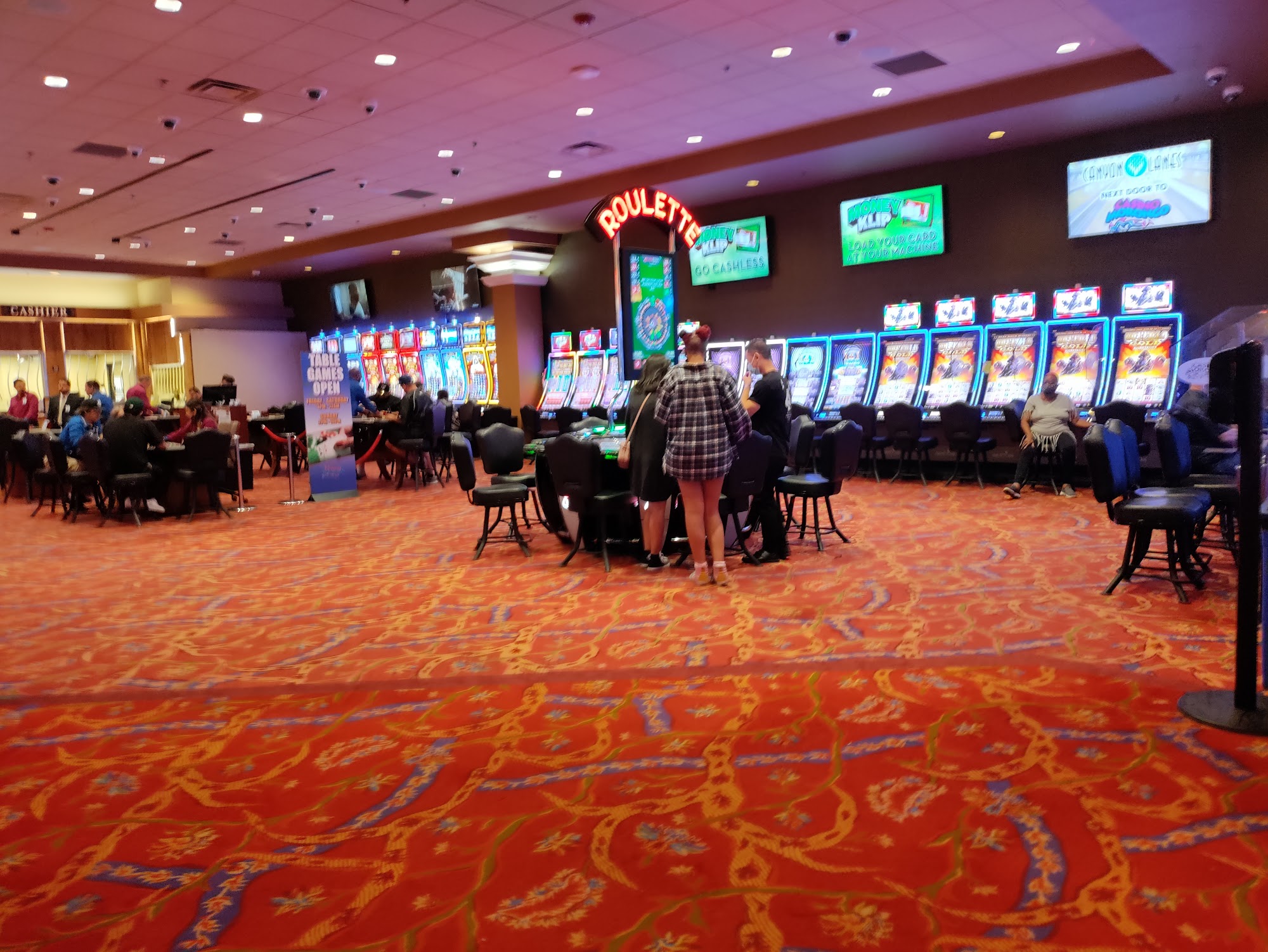 Canyon Lanes at Morongo is a vibrant bowling alley located in Cabazon, California, just a short drive from Indio, the Greater Palm Springs area, and Joshua Tree. Connected to the Casino Morongo, it features 24 clean and well-maintained lanes, making it an excellent choice for families, couples, teens, and coworkers seeking a fun outing or serious competitors looking for a challenge. The alley offers leagues for all ages and skill levels, along with exciting tournaments. On weekends, guests can enjoy blacklight bowling, with both family and adult sessions available. The atmosphere is bright and cheerful, making it a great venue for special occasions, such as birthday parties, where guests can celebrate in style. Canyon Lanes also features gaming machines, an arcade, and a Pro Shop. Guests can indulge in a variety of delicious food options, including burgers, wings, pizza, and churro donuts. A full bar is available, along with a snack bar that serves tasty items like chicken tenders and fries. For added convenience, a shuttle service is offered to transport guests from the resort to the bowling alley. Overall, Canyon Lanes provides a fun, clean, and welcoming environment for all.