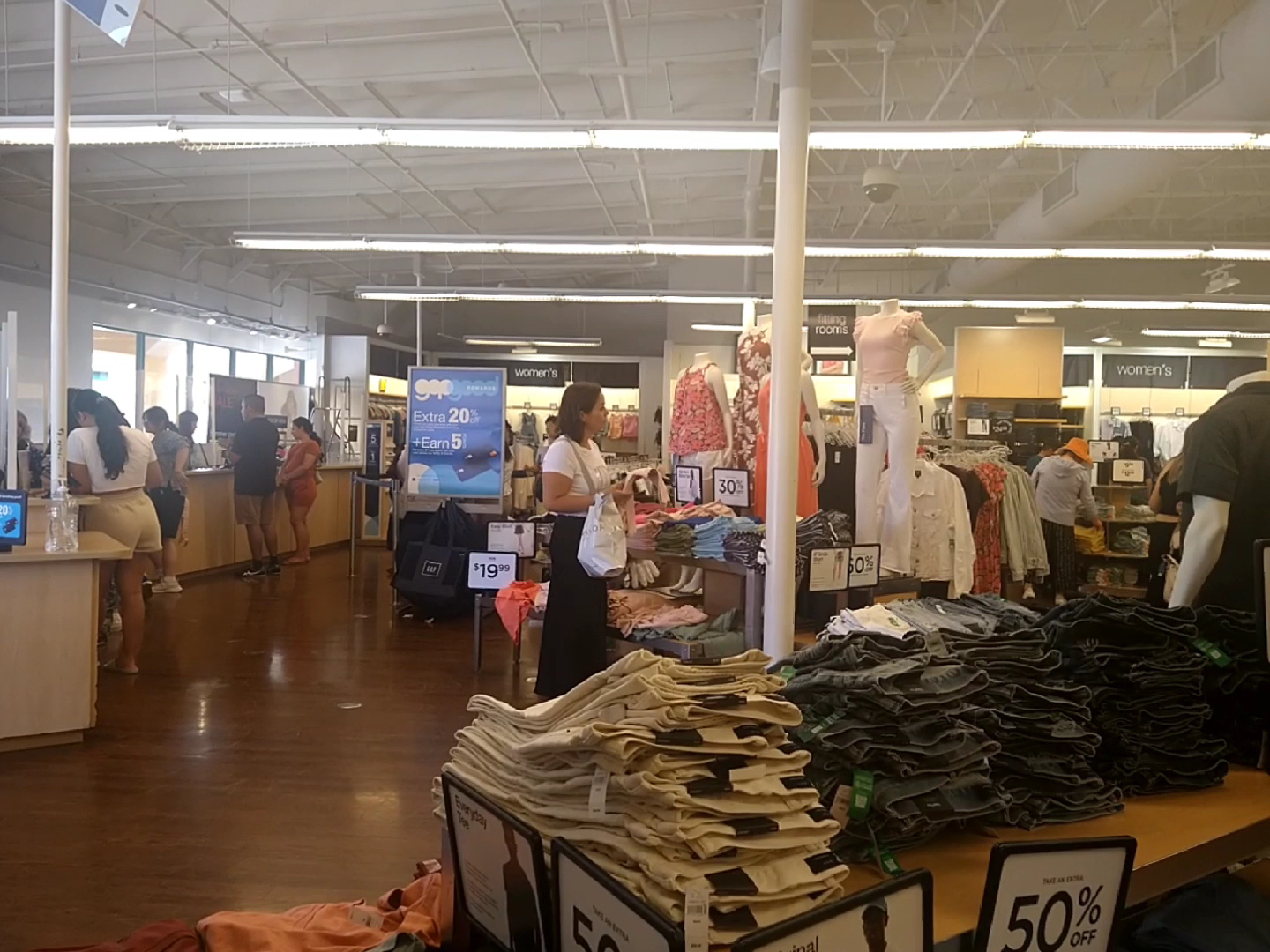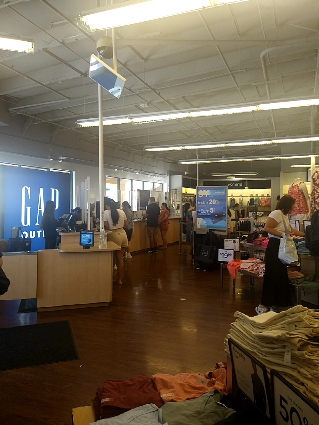 Gap Factory is a favorite store for basic, staple clothing in simple colors that are easy to mix and match into multiple outfits. Shoppers appreciate the natural fabrics, especially in summer, and find the clothing practical for outdoor work and driving. Many customers report that sizes tend to run big. The store is known for having great deals, decent sales, and a good clearance section, with items like shirts often found under twenty dollars and additional discounts on already marked-down prices. Shoppers frequently walk out with full bags. The helpful and calm staff receive positive mentions for assisting customers in finding items like jeans and offering shopping bags. The store environment can be pleasantly empty during off-peak times. Overall, visitors report wonderful shopping experiences with quality clothing that fits well, even years later, making it a reliably satisfying destination.