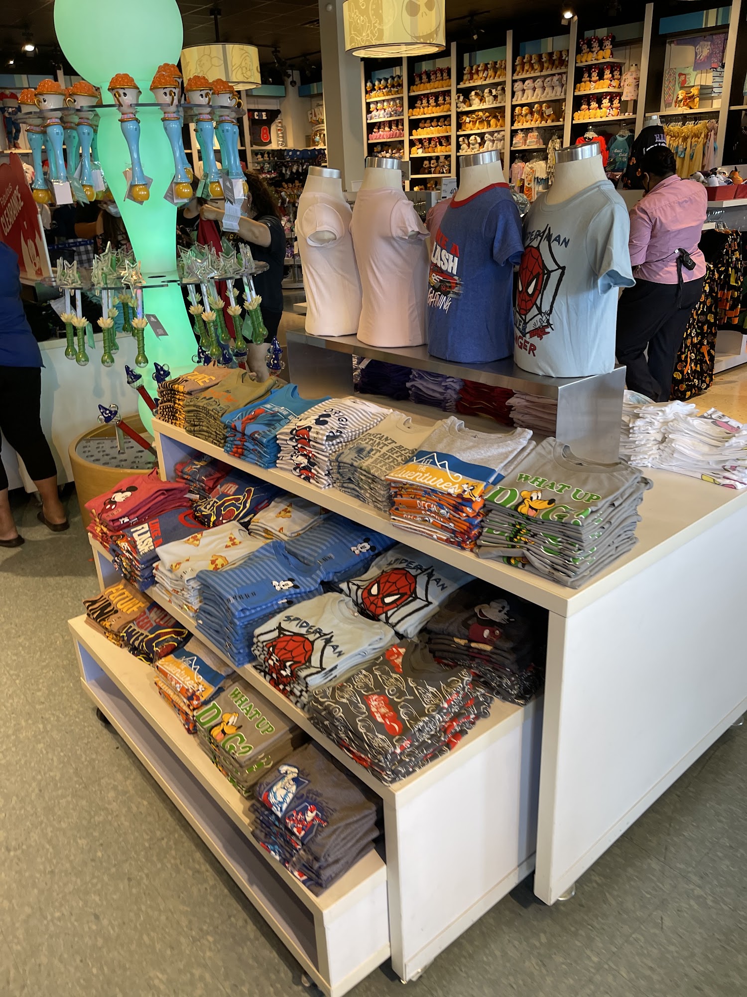 The Disney Store offers a wide selection of merchandise for Disney fans of all ages. The store features gear, clothing, toys, games, and stuffed animals from favorites like Disney Princesses, Star Wars, Marvel's Avengers, Pixar films, and more. It includes cosplay costumes, gifts for adults and kids, and a selection for babies. The inventory can be hit or miss, with some great deals and occasional premium items for a steal, including current park merchandise. Prices are very similar to a typical Disney store, with some items slightly lower. The store is described as kid-friendly and double stroller friendly, with plenty of available parking right out front. Despite daily chaos, it is generally pretty clean and well kept. The staff are noted as very friendly, attentive, welcoming, and helpful. Checking out is typically a smooth and quick process, though lines can get long on peak days. Overall, the store provides a magical experience and does not disappoint, leaving visitors eager for their next visit.