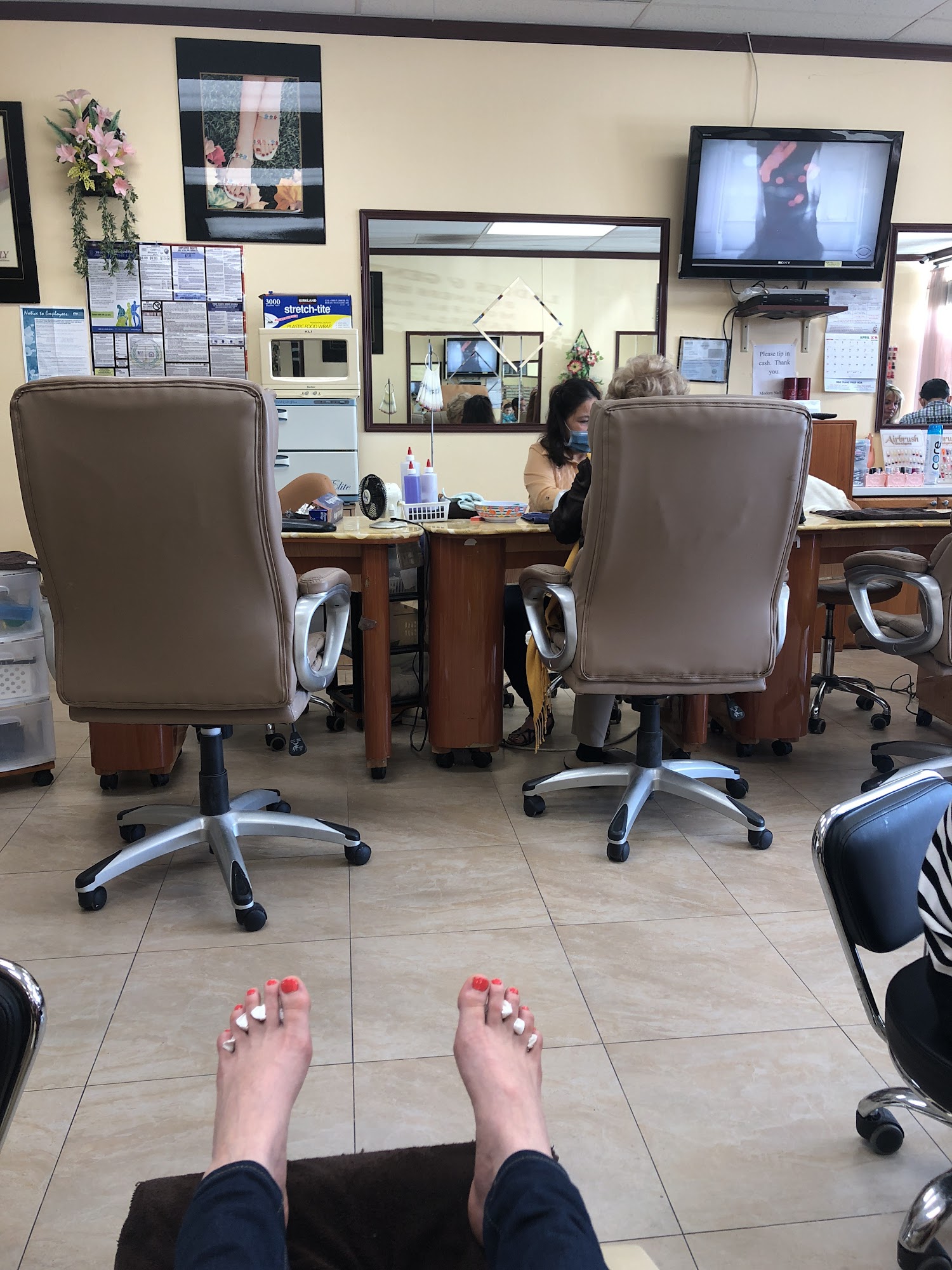 I got a mani pedi the lady's got me in quick and made my nails really pretty. The prices are fair as well.