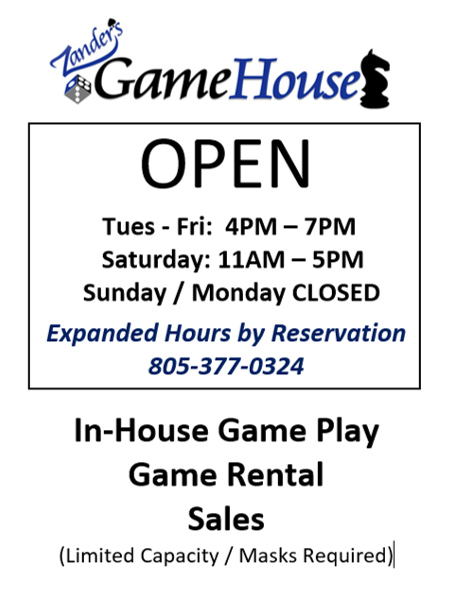 Zander's Game House is a welcoming space where friends and family gather to connect through tabletop board gaming! Inexpensive Family Fun in Camarillo! Game Play, Rental and Sales. Dungeons and Dragons, Star Wars X-Wing and Magic the Gathering meet ups. More details on our website. Zander's is a great location for birthdays and special events. Make new memories here!