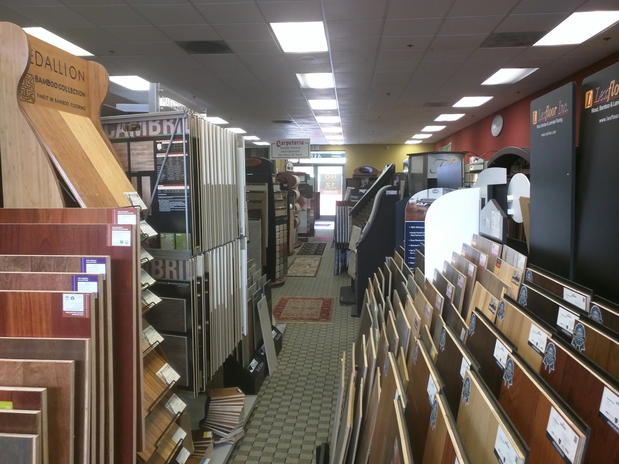 At Carpeteria Flooring Centers we specialize in Carpet, Hardwood, Laminate, Tile/Porcelain, Luxury Vinyl and Custom Area Rugs. We offer Senior Citizen and Military Discounts! Next to Home Depot + Care Indeed History Established in 1973. Family owned and operated for over 45 years, Carpeteria provides value pricing on quality name brand flooring products. We service the residential community, commercial flooring for property managers, contractors (remodels or new construction) and an EXCELLENT resource for Interior designers with 4 showrooms in the Bay Area to serve you - Campbell, Los Altos, Dublin + San Leandro