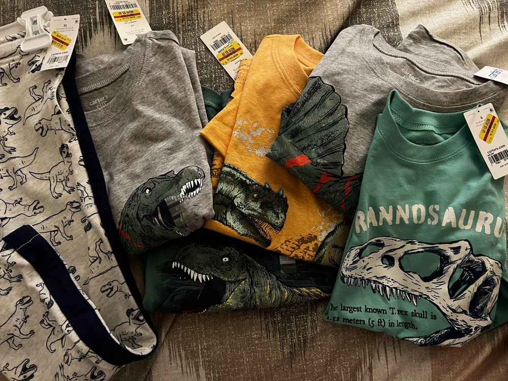 I always buy my boy nice clothes, shoes, backpack, toys, pjs, jackets etc from Carter's & OshGosh brands. They have Hotwheels & American flag shirts, tanks! Sometimes I order online, delivery pickup or shop in the store. Cute, classy, great quality merchandise.