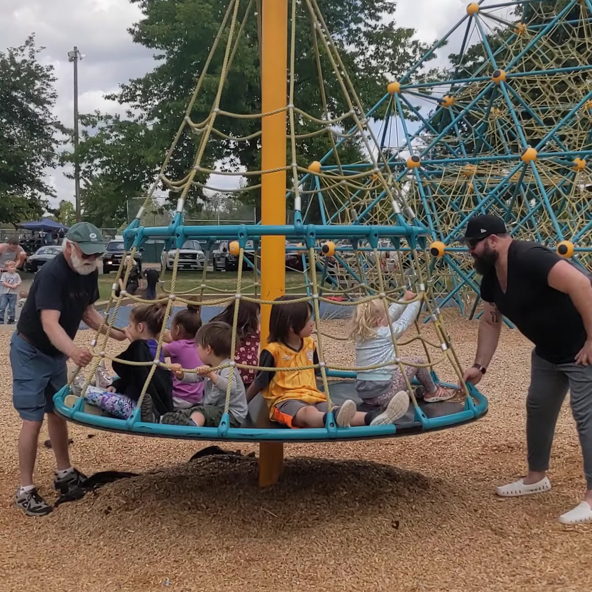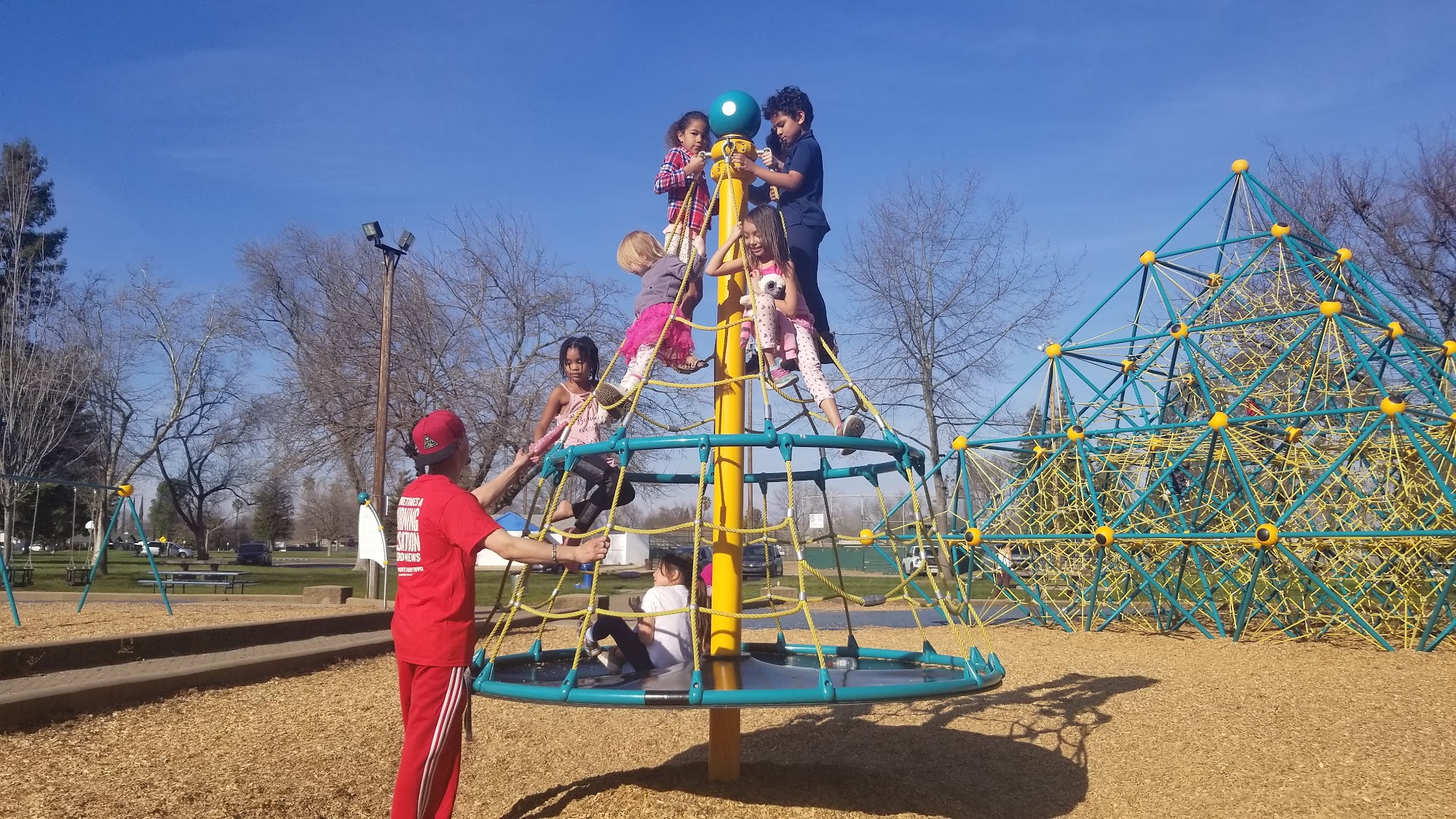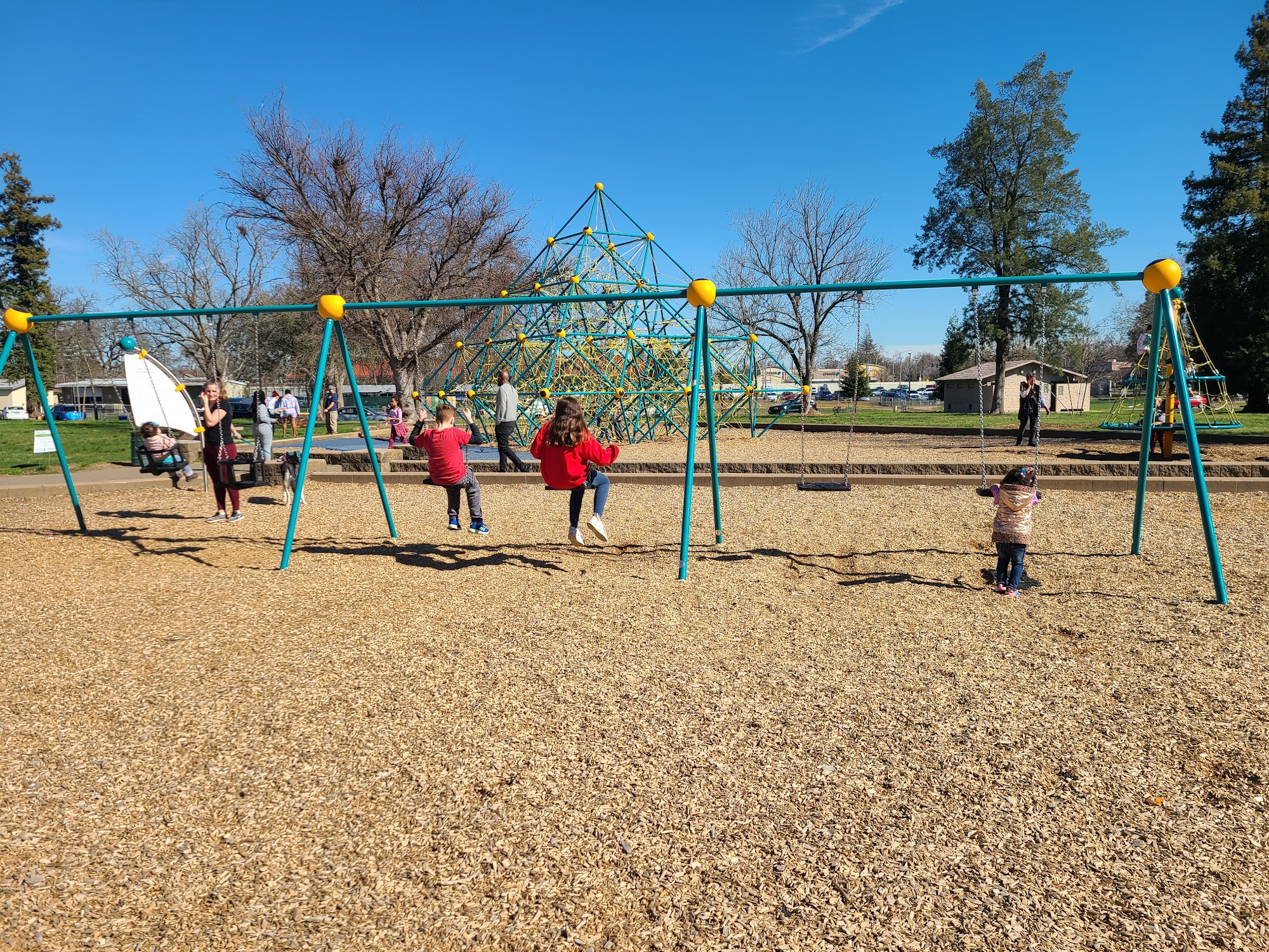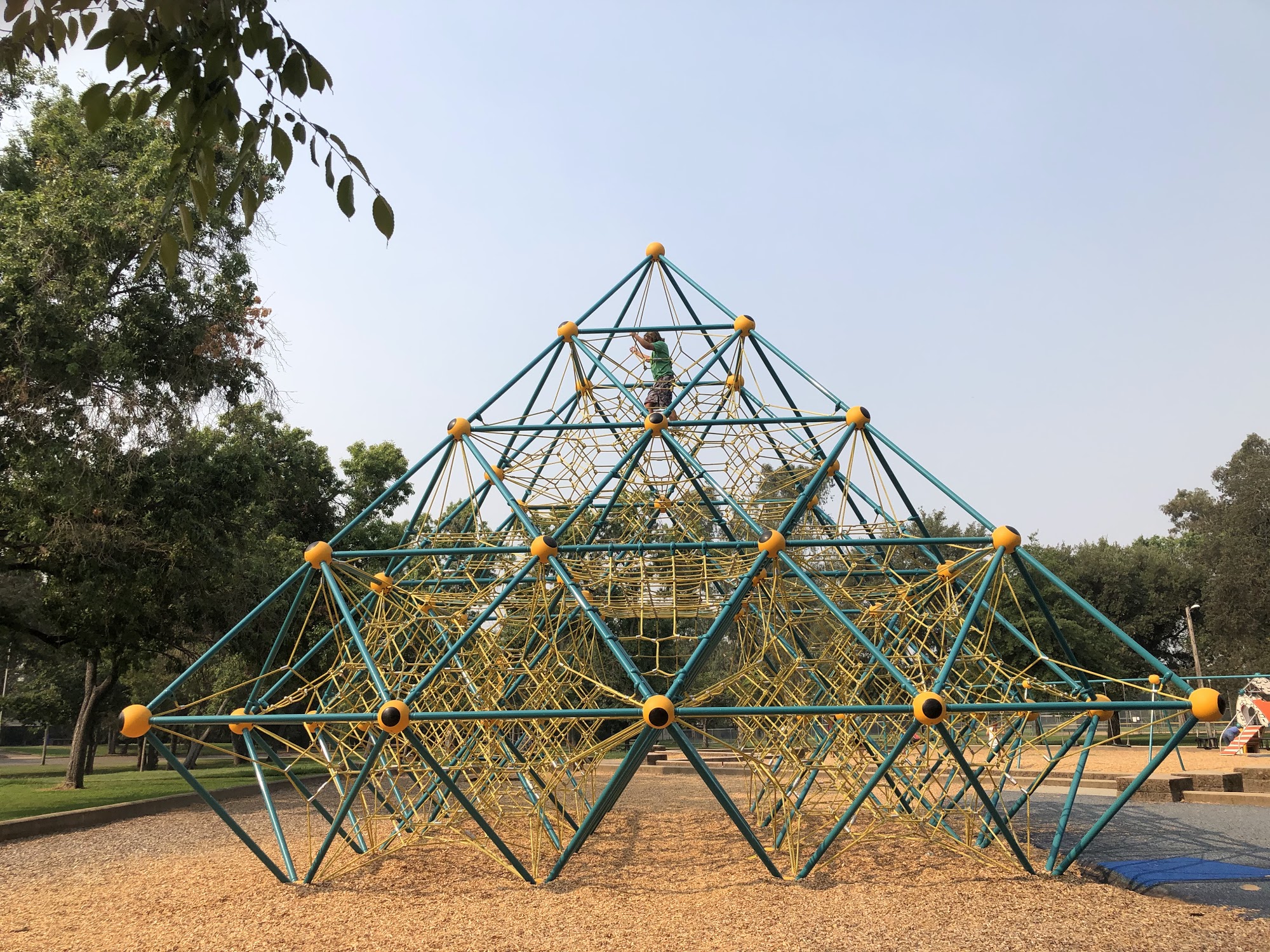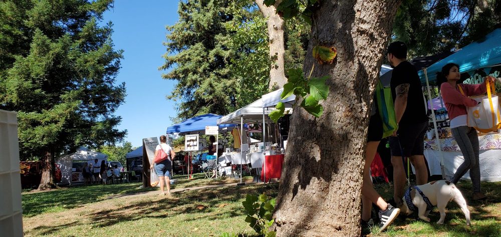Carmichael Park is a clean, enjoyable space for families, kids, and pets. It features a playground with big lay-down swings, a large climbing pyramid, and a multi-kid spinner, all well-maintained. The park has a dog-friendly area with separate sections for big and small dogs, where friendly owners and happy dogs can be seen. Visitors can enjoy mature trees, grass, and tables in the picnic areas, which include both covered and uncovered options. There are also toilets centrally located for convenience. Additionally, the park hosts fun events and a farmers market on Sundays. Overall, it’s a pleasant, welcoming place to relax and play.