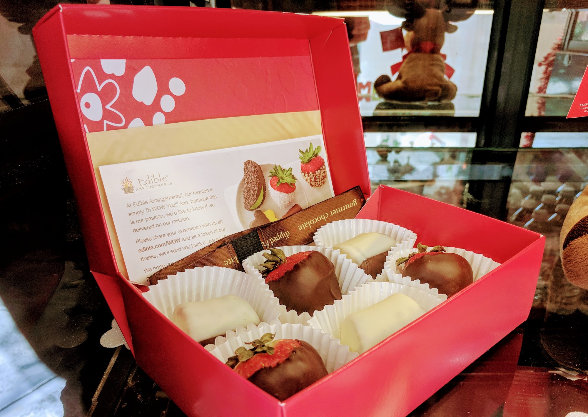 Whenever I need a quick gift or have a sweet tooth, I love stopping by this location. The staff is very friendly ? they already know I'm here for my chocolate covered strawberries ? ?