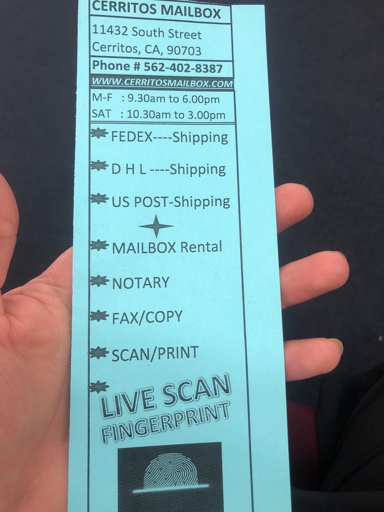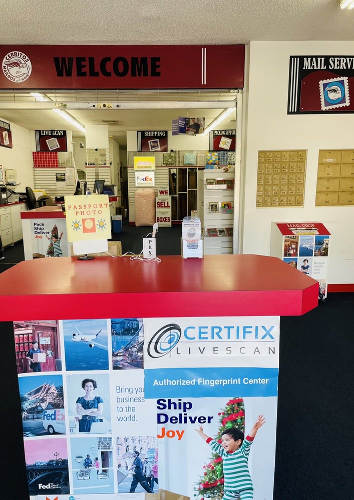 Welcome to Cerritos Mailbox and More! At Cerritos Mailbox and More, we have been family owned and operated for more than 15 years and serving the local area of Cerritos, California ever since! We pride ourselves on our customer service and our pricing. Our customers are always guaranteed to receive friendly and personalized service when they work with us! We offer a multitude of services such as Mailbox rental, Shipping, Live Scan fingerprinting, Passport Photo, B/W and color copy service, Scan and Print document and Fax service. We also sell packing material, office supply and boxes. We utilize FedEx, USPS, and DHL to ship all of our packages nationwide! Give us a call today!