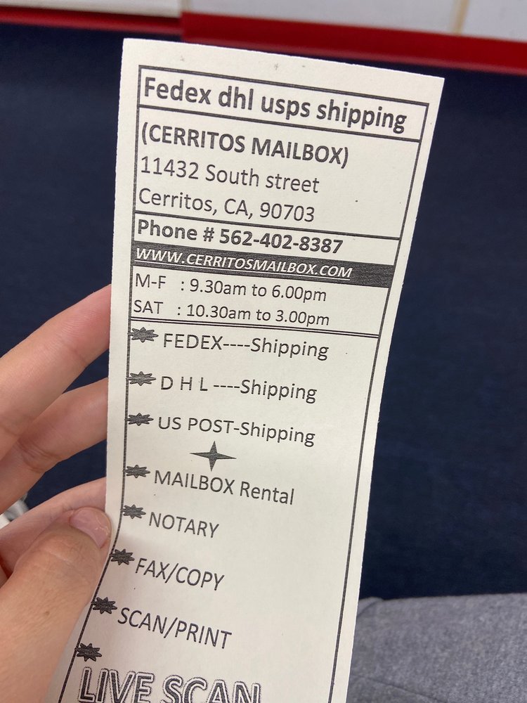 Certifix Live Scan at Cerritos Mailbox and More offers convenient and efficient fingerprinting and background check services approved by the DOJ and FBI. Located just minutes from home or work, the business provides a fast and straightforward process. Customers appreciate the friendly staff and the quick service, often completing their live scans in under five minutes. Many have returned for repeat visits, bringing family members due to the helpfulness and efficiency of the staff. Residents of Cerritos value this local service for its accessibility and excellent customer care, making it a highly recommended choice for anyone needing fingerprinting services.