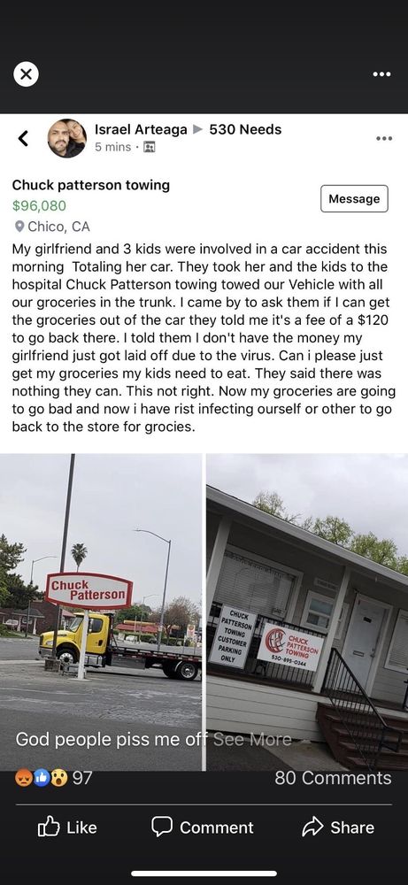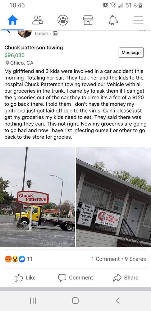 Joe with Chuck Patterson is the best tow truck driver in town! The absolute nicest guy ever, and he’s always eager to help!