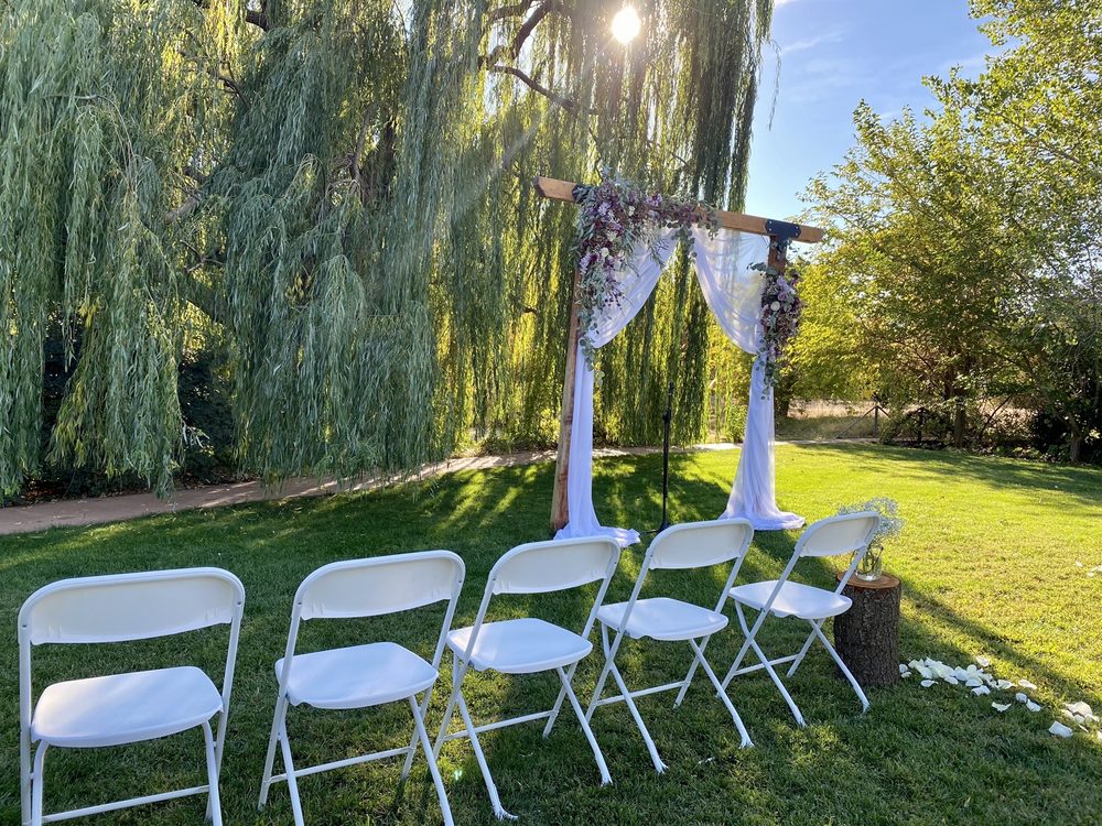White Ranch Events is a beautiful outdoor venue known for its stunning setting and peaceful atmosphere. The venue features a lovely big weeping willow tree, a pond, and a pathway covered in plants and lights that create a magical ambiance at night. It is an ideal location for outdoor ceremonies, offering a scenic and greenery-filled backdrop. The site includes a playground for children, a bridal suite, and a fun borrowing room with free items to use on the day. Chairs are included, making planning easier. The family-run business is highly praised for being accommodating, friendly, and easy to work with, ensuring that each wedding is special and well-organized. Guests have enjoyed the gorgeous scenery, the glow-up at night, and the overall atmosphere. While some noted minor issues with table management during events, the overall experience at White Ranch Events is positive, with many recommending it for its beauty, helpful staff, and charming environment.
