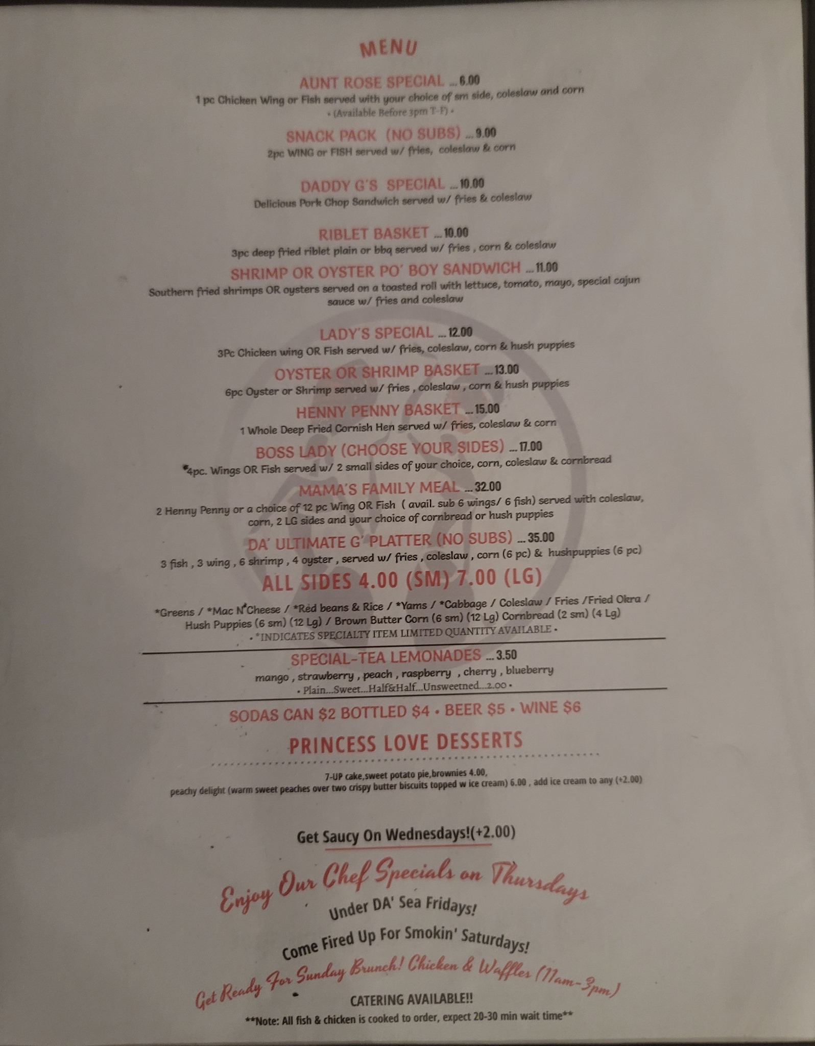 We just recently visited Lady G's Soul Spot with my family for for my daughter's birthday. We dined in and I ordered the Boss Lady. The food was very good!!?? We drove 45 minutes to get there and it was worth it! We will be visiting again.