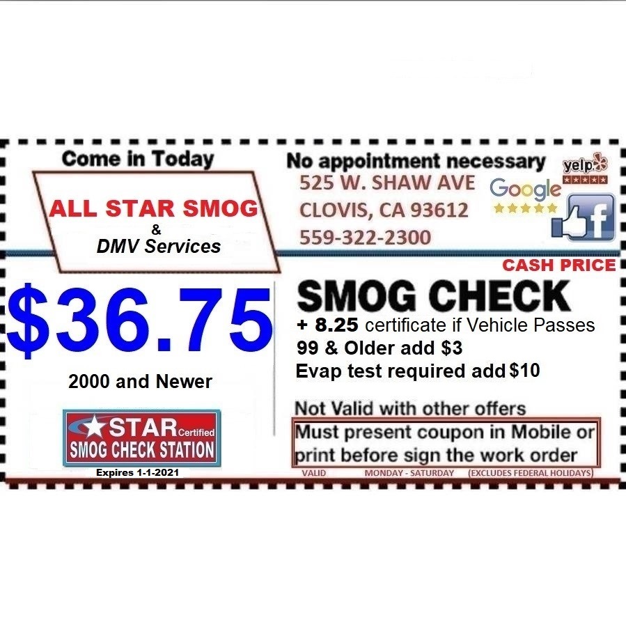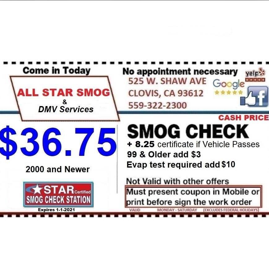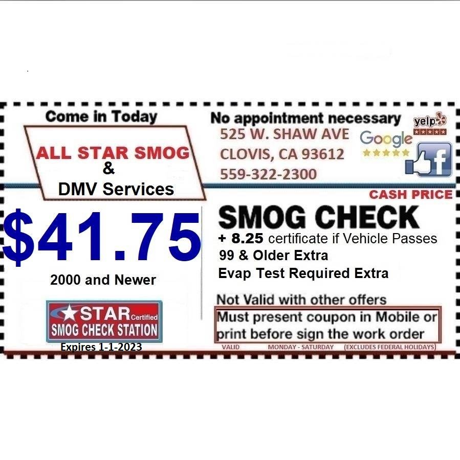 All Star Smog & DMV Service is a friendly, family-owned business known for fast, professional, and high-quality customer service. They are a Star Certified Smog Station and licensed DMV registration provider, offering services such as smog checks, registration renewal, transfer of ownership, VIN verification, and out-of-state registration. Customers appreciate their quick and efficient inspections, often completed within minutes, helping them avoid long lines at the DMV. The staff is courteous, caring, and always ready to assist with questions or concerns, ensuring a positive experience. Many reviews highlight their welcoming environment, with shaded seating available while waiting, and their ability to handle unexpected situations professionally. The business provides reasonable prices for top-notch services, with a reputation for reliability and customer satisfaction. Repeat customers praise the staff’s helpfulness, humor, and willingness to go above and beyond, such as fixing a stuck gas cap in minutes. Overall, All Star Smog & DMV Service offers fast, accurate smog checks and DMV services, making the process smooth and hassle-free for all customers.