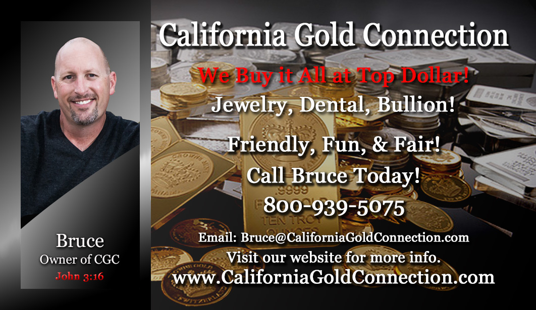 Bruce here, the owner of California Gold Connection... Welcome! All the buying I do is by appointment, in a private setting, where you and I will sit down and review what you have. You’re welcome to ask any necessary questions to be 100% satisfied with the process. I’m not your conventional buyer, sitting behind bulletproof glass in a security bar-clad building, taking your items to the backroom for analysis. This can be very intimidating and extremely uncomfortable. We will sit together and review all your items, doing all I can to make the process as transparent and informative as possible so you can do what’s best for you. I hope you leave 100% satisfied whether you sell or not.