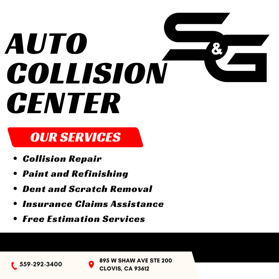 S & G Collision Center, located off Shaw Ave between Willow and the 168 behind Hedrick's Chevrolet and Toyota, is a certified full body shop. They offer repair, paint, refinishing, and dent and scratch removal, accepting all insurances and assisting with claims. The staff is professional, communicates clearly, and gets repairs done quickly. The center is AAA approved, and bilingual services are available. Customers appreciate the friendly, patient service and reliable, efficient repairs. Free estimates are provided for all repairs.