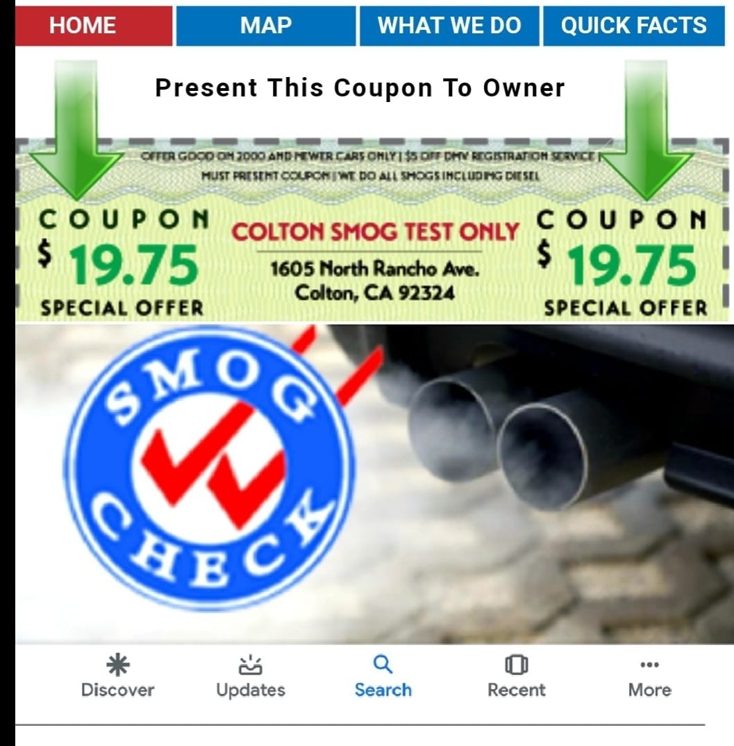 Colton Smog Test Only is a STAR Test Only Center authorized to perform Regular and Test Only smog inspections. The center provides excellent and professional service, known for being very friendly and offering VIP treatment. Customers report fast, quick, and reliable service for the best affordable prices. Many have been coming for years, recommending it as the place to come for a smog check. Reviews highlight honest inspections and a smooth, in-and-out experience where you won't be disappointed. It is consistently described as a reliable neighborhood business for your smog test renewal.