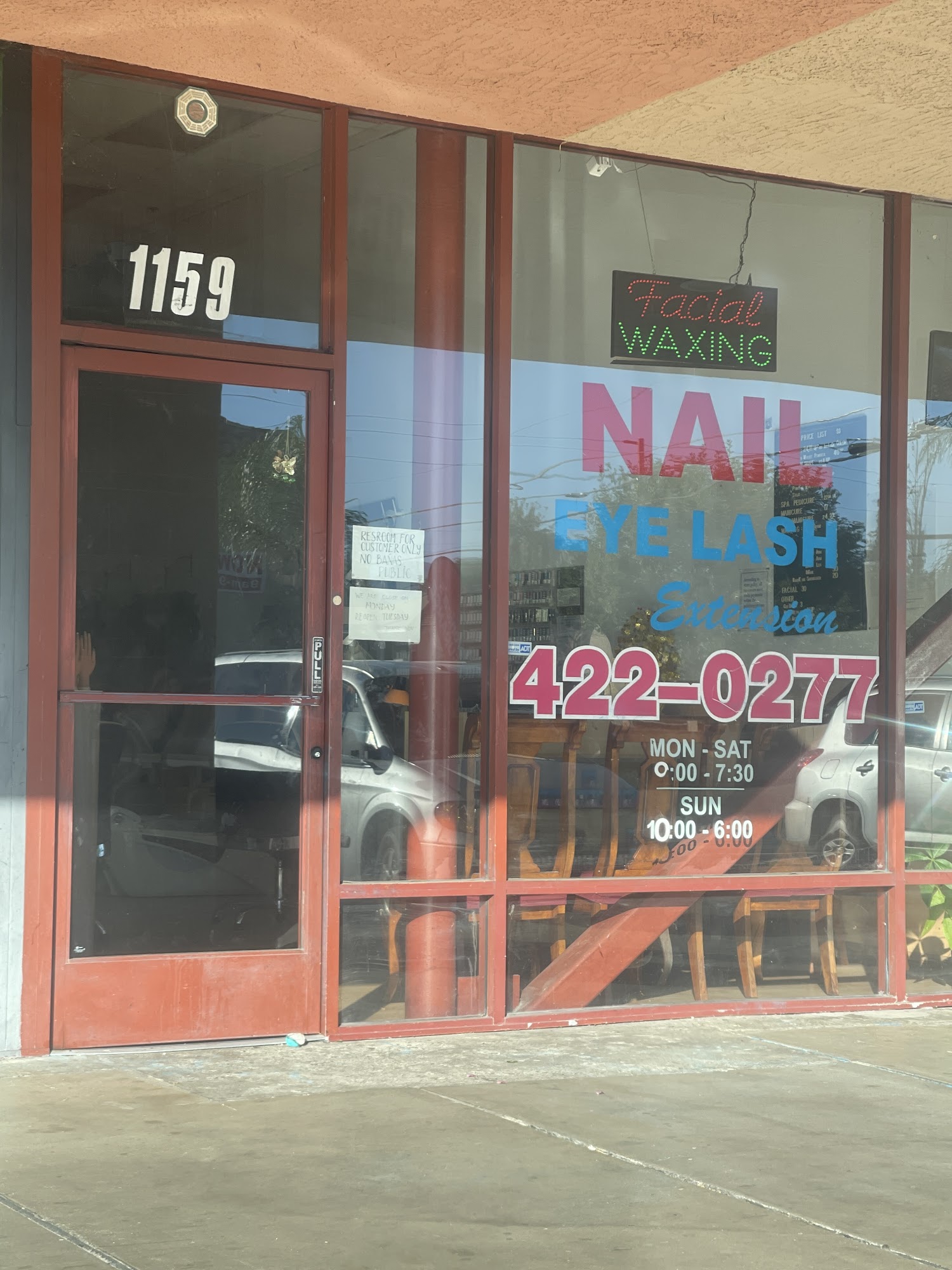 I came here for a full set, my toes look good but then she did my nails, the shape was really chunky and my pointed finger the acrylic is literally crooked, I mean the works were amazing and it was a good mood but i wished i read reviews.