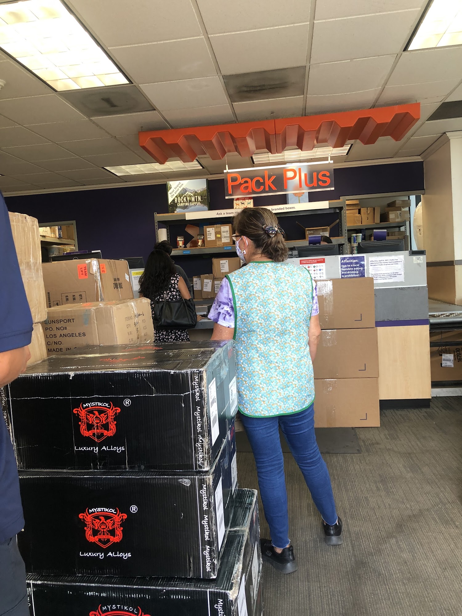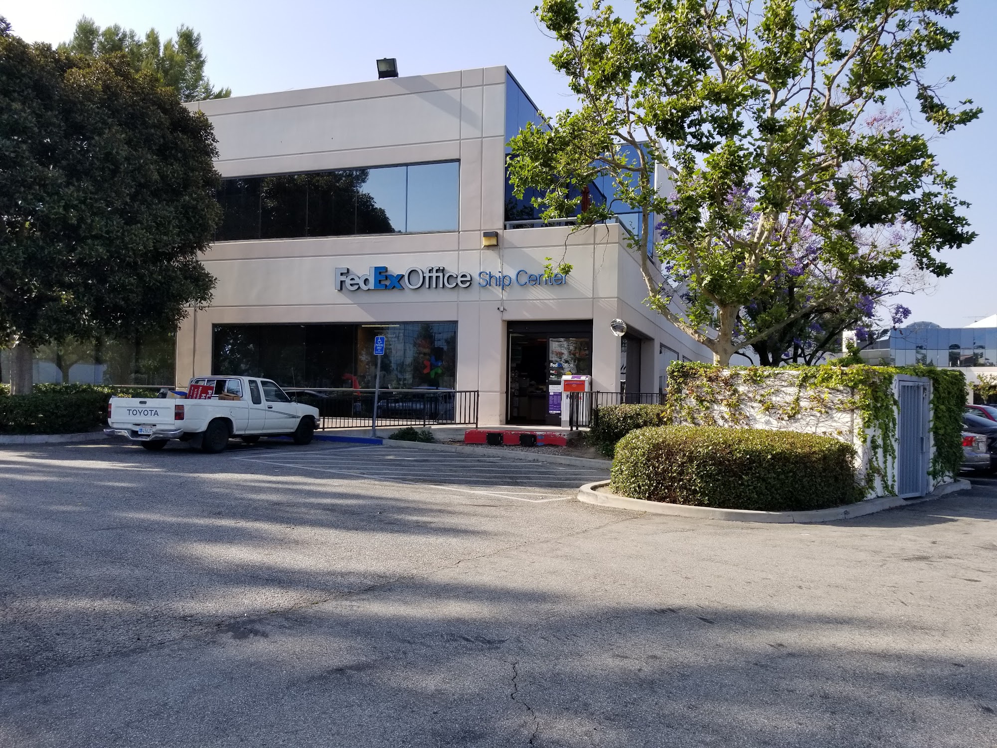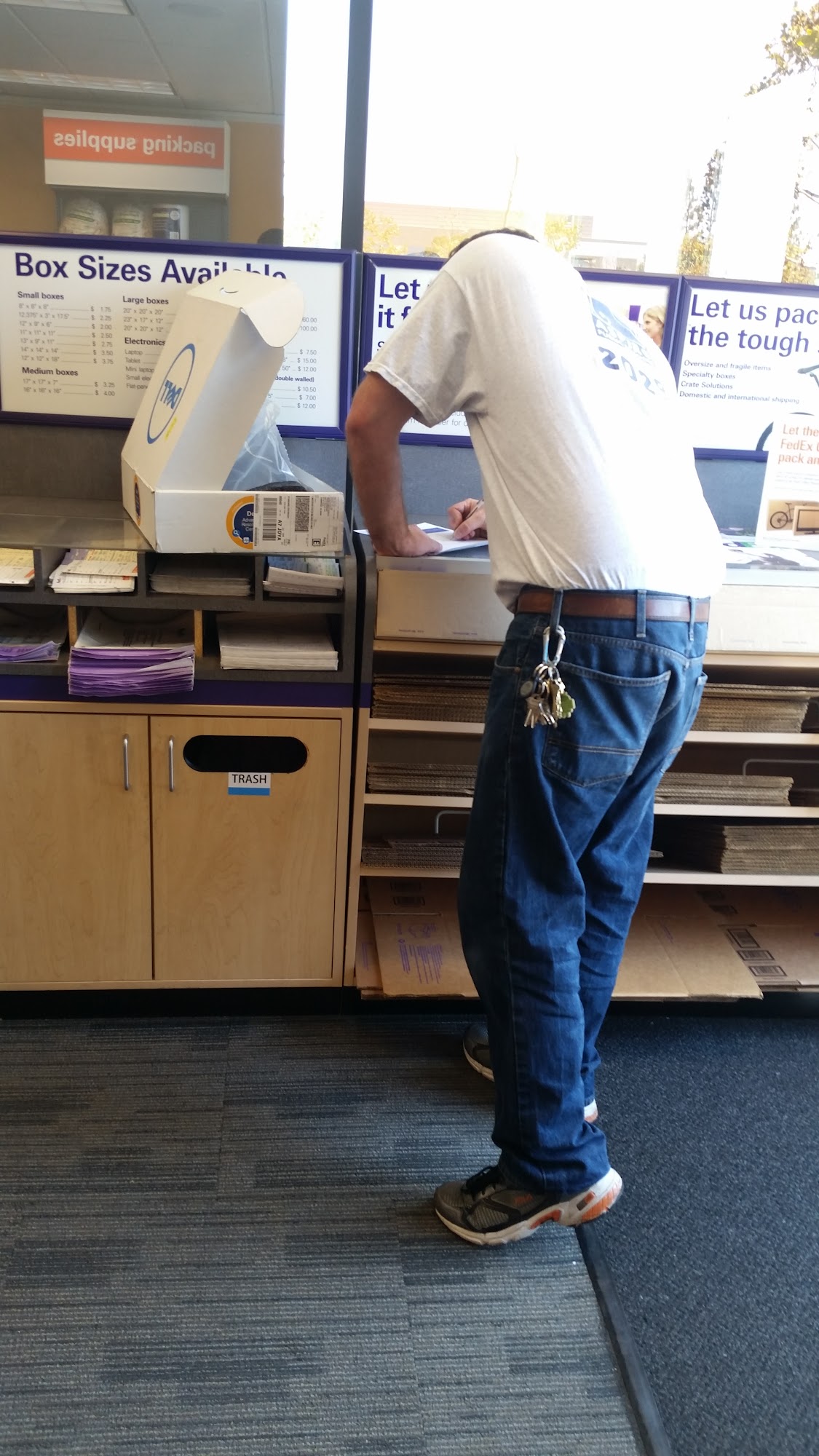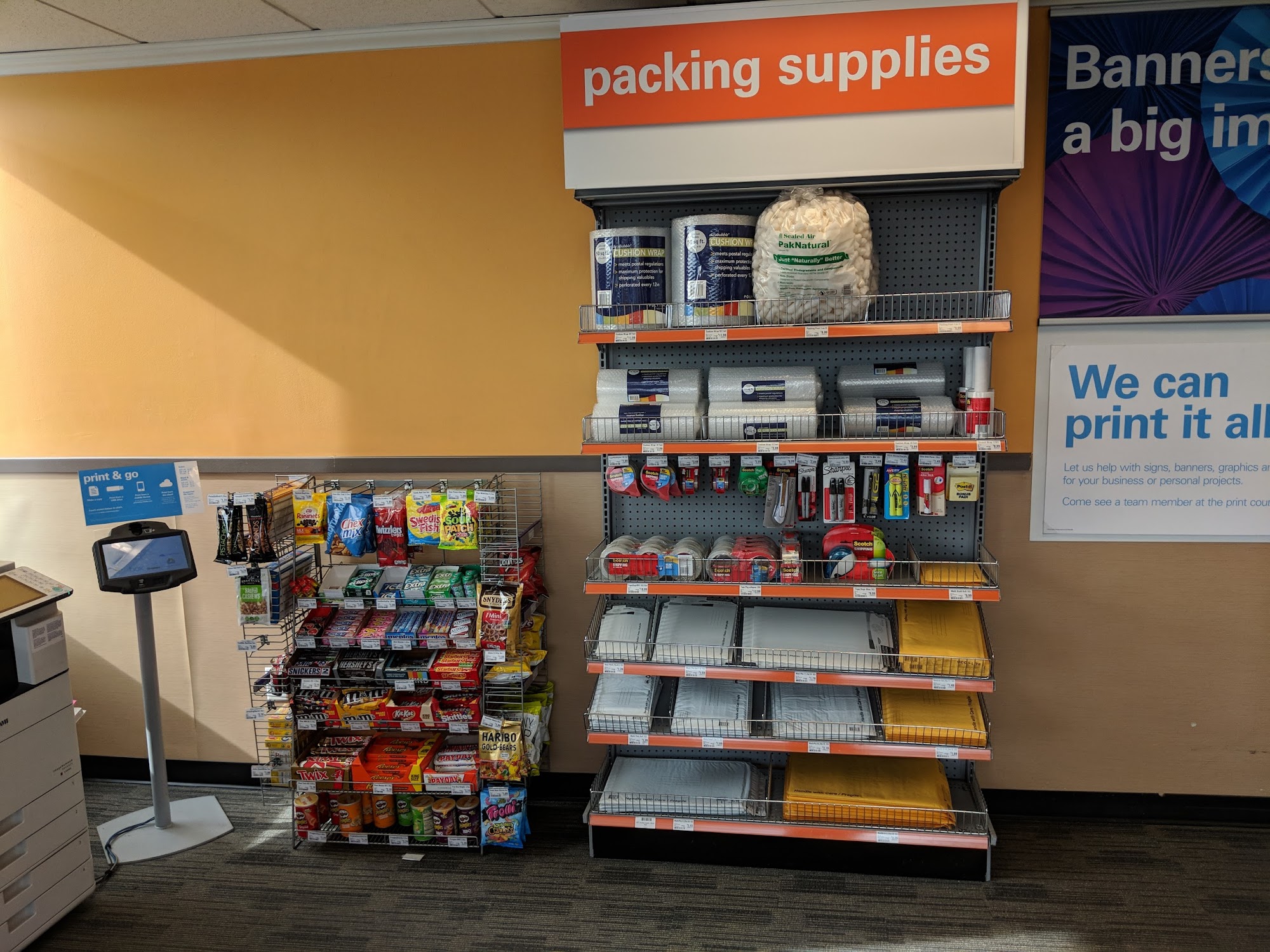 Good place to drop fedex packages . There's scanning label machine inside fedex store.