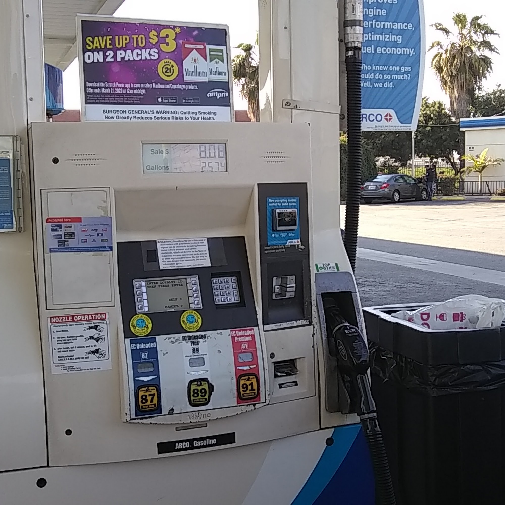 ARCO of Compton offers quality TOP TIERâ„¢ gas at one of the cheapest prices in the area. It is very close to the freeway entrance and exit. There are many gas pumps open, hardly any closed. The cashier is super fast and friendly. Customers can get a large coffee for a dollar. It is a recommended go-to place with pleasant music and no bothersome approaches, though sometimes there is a small line to pay inside.
