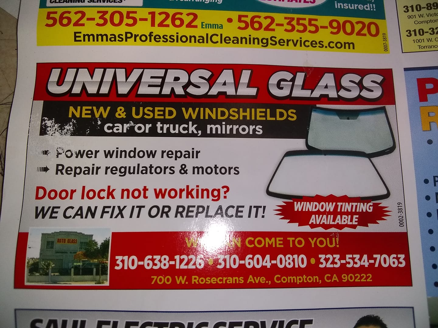 Universal Glass Services provides excellent and fast auto glass replacement. Customers report great customer service, with friendly and helpful staff. The service is quick, with work often completed in under 30 minutes or even less than 10 minutes. They are known for having hard-to-find materials when other places do not. The price is consistently described as fair, great, and the lowest or best price around. The quality of the work is good and they use reliable, old-school methods. The shop can handle windshield replacement and tinting efficiently. While the business is cash only and the exterior may be unassuming, the people inside are nice and provide amazing service, turning stressful problems into solved matters. Many customers are satisfied and recommend the business.