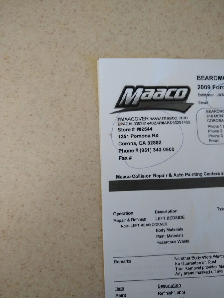 Maaco Auto Body Shop & Painting is North America's #1 body shop. Maaco Corona located at 1247 Pomona Road, Unit 107 repairs accident damage, dents, and faded paint for drivers across California, restoring the safety and beauty of all types of vehicles. Let Maaco transform your car with a new coat of paint and soon you'll be driving the car you always wanted. Maaco expertly does away with dents, dings, and accident damage. Their standards are simple: repair cars so expertly no one can tell they were ever in an accident. Maaco guarantees their auto body repair and car painting work. Customers praise the excellent customer service, quick turnaround, and high-quality results, with one noting their car looks "brand new" after the repair and paint job.