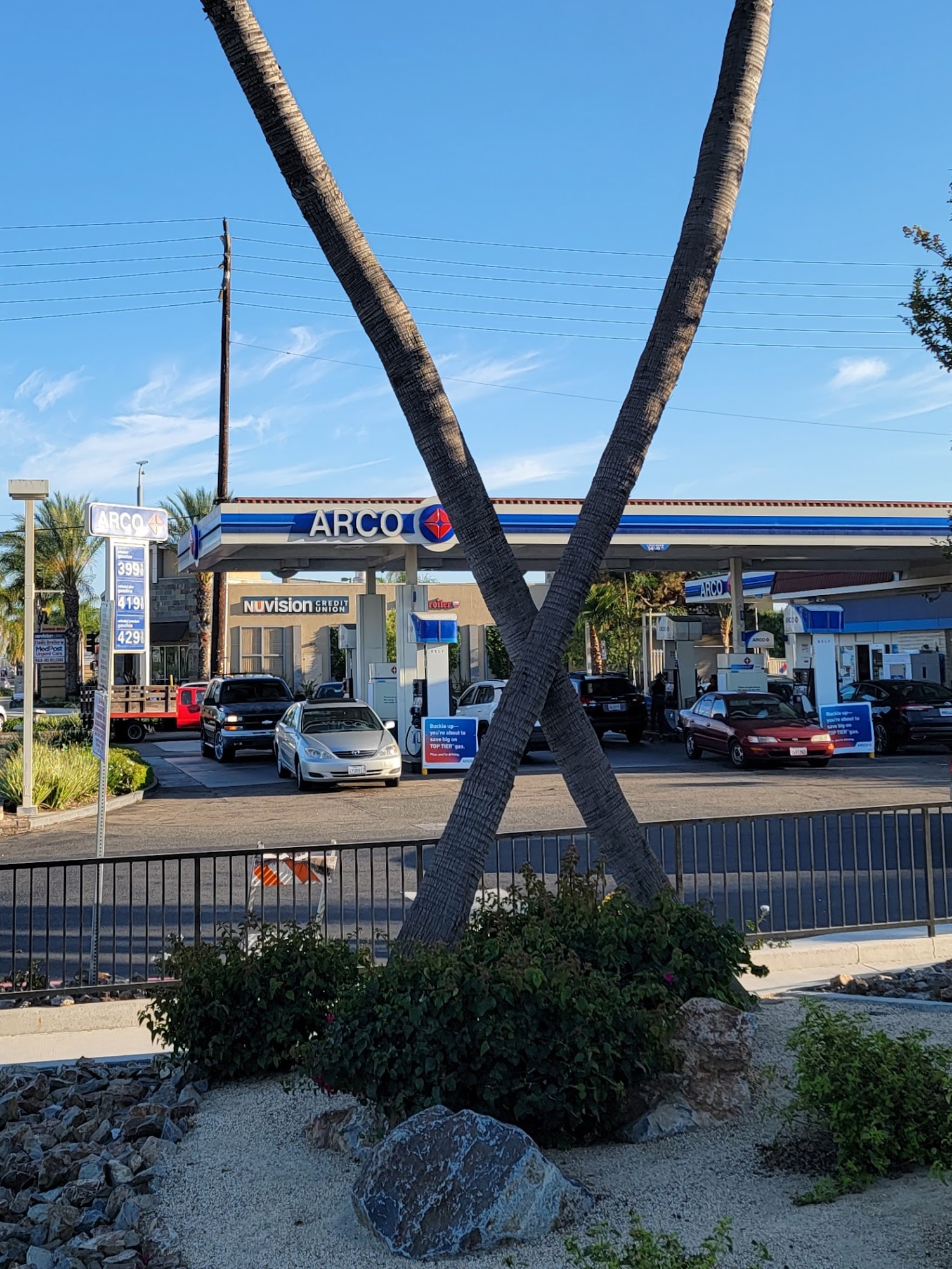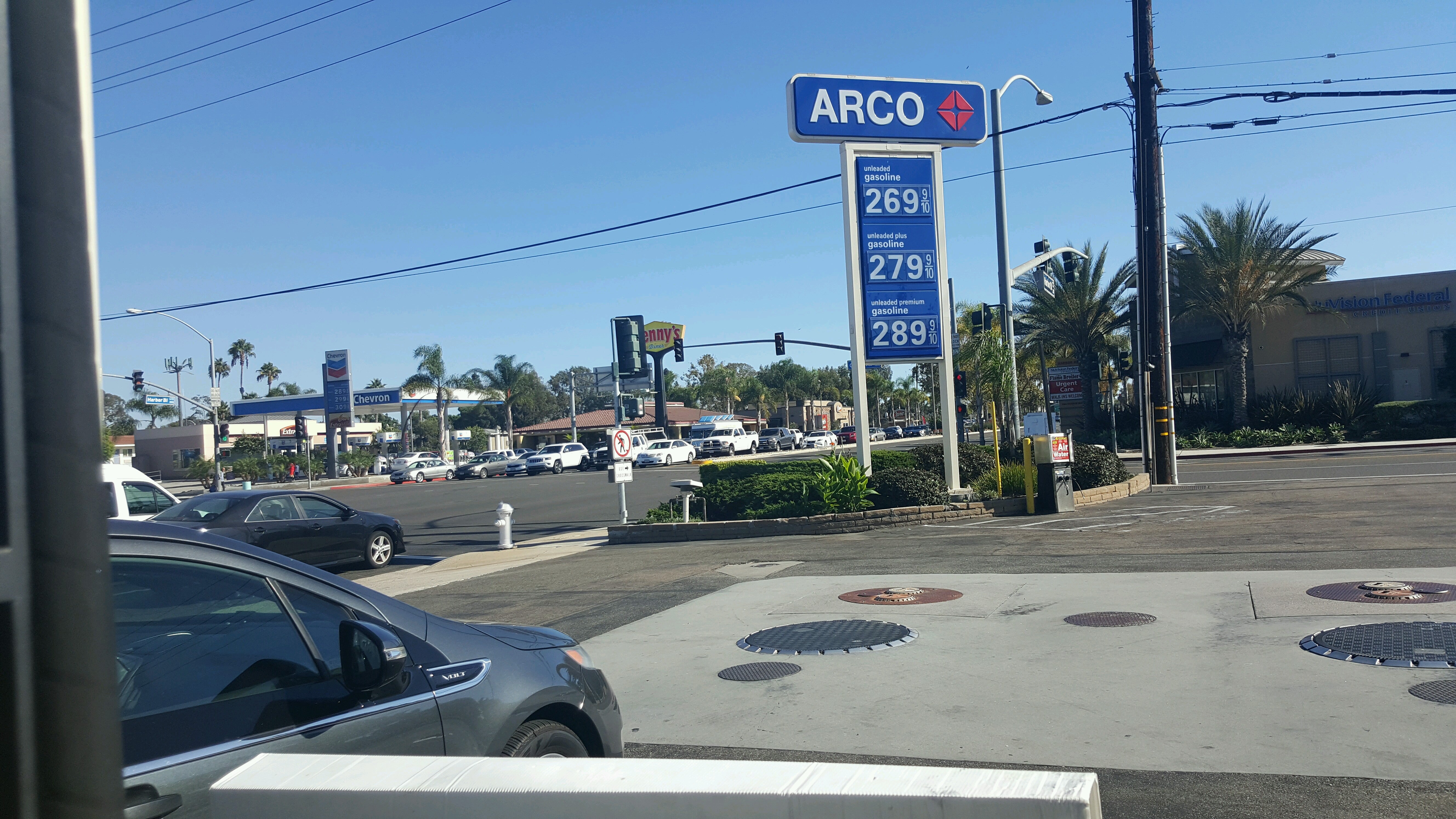 Great prices at this location on harbor blvd adjacent to in n out. Entrance may be blocked by in n out patrons on Gisler but lots of working gas pumps.