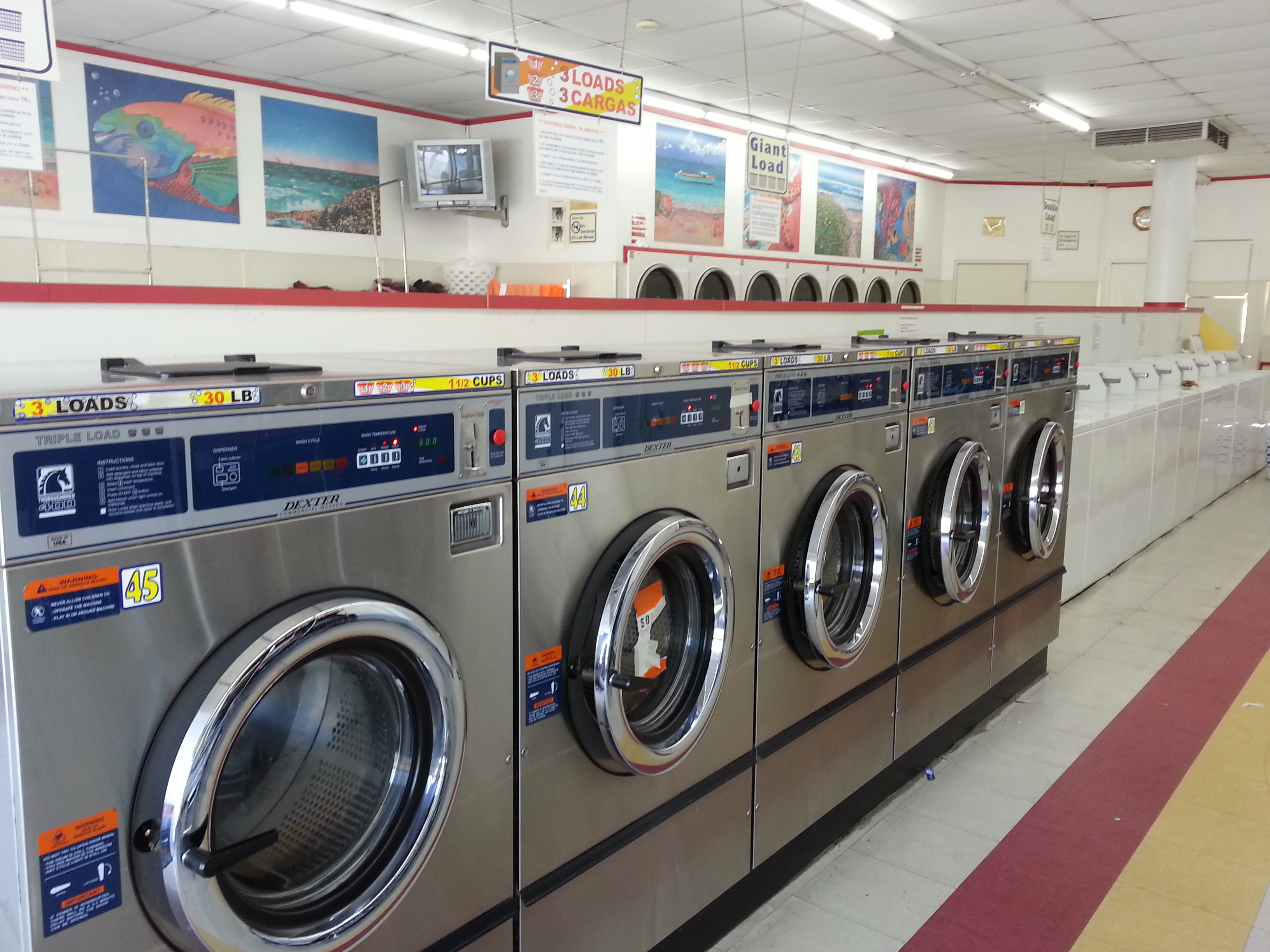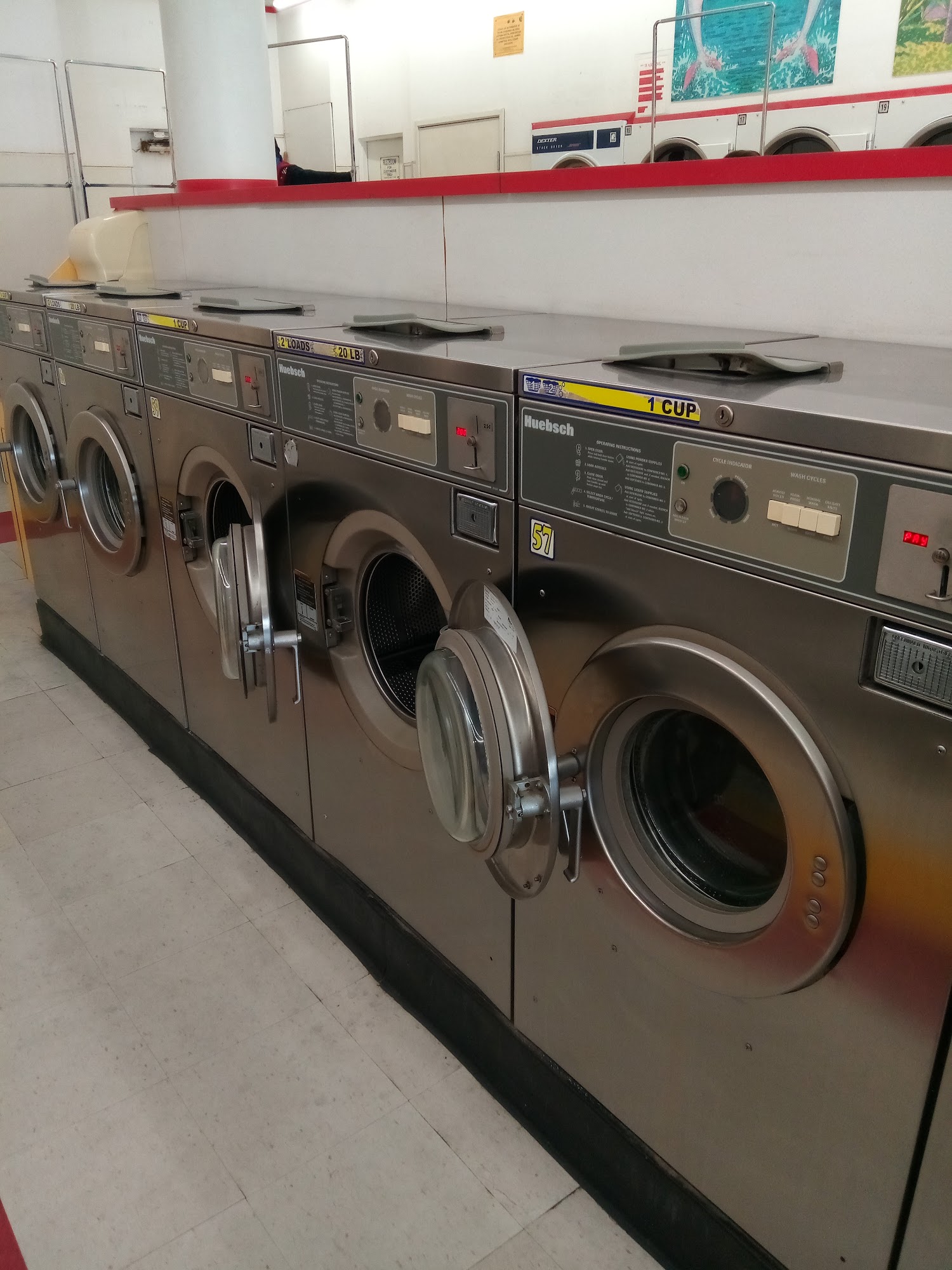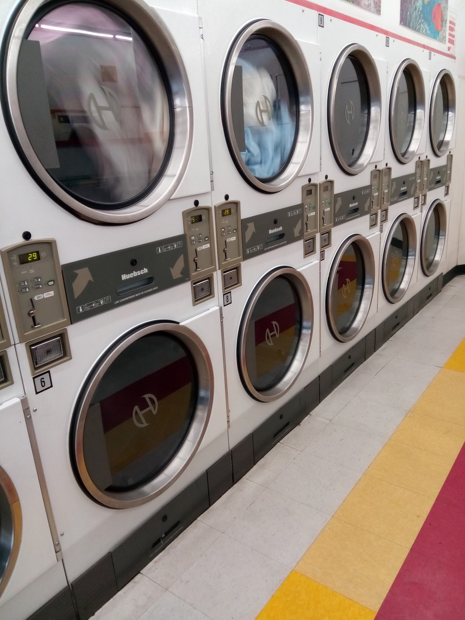 Clean!!! Big washers! Dryers that actually do it's job! 0.25 get 6min, $1.25 =30min clothes dry. I recommend the place.