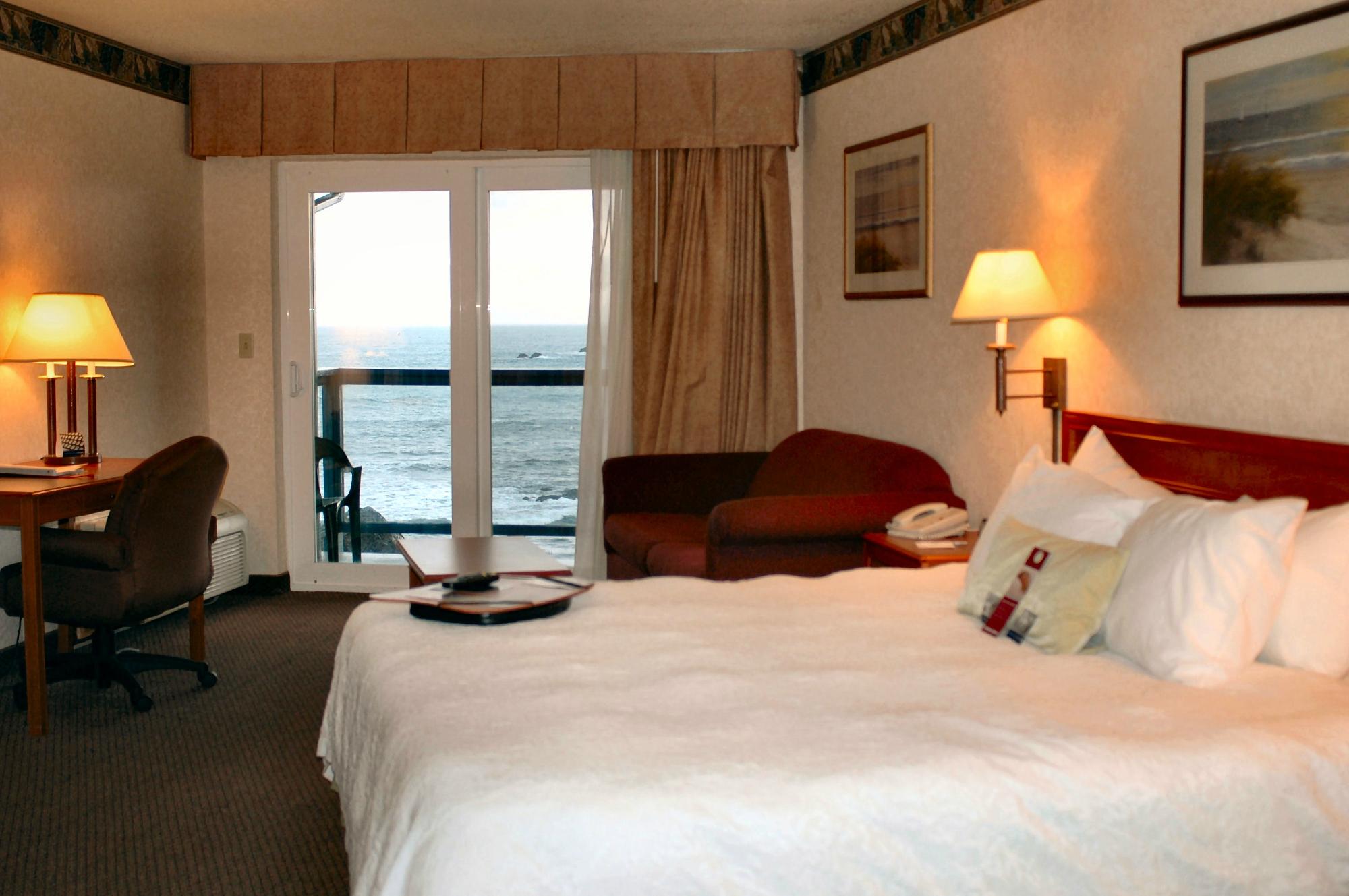 Oceanfront Lodge offers a pleasant stay with exceptional views and sounds of crashing waves. Guests appreciate the helpful front desk staff, particularly one employee who goes the extra mile to ensure a perfect room. The hotel features clean accommodations and pleasant staff, with some rooms boasting balconies and ocean views. However, there is no complimentary breakfast, and the on-site restaurant operates on an a la carte basis. Many visitors highlight the indoor pool and the lodge's proximity to the beach, despite it being rocky and not ideal for children. The clam chowder served at the restaurant is frequently praised as the best on the coast. While some rooms may have a strong bleach smell and the lodge shows signs of being a bit outdated, guests find the overall experience enjoyable and worth the price. With access to local attractions like a lighthouse and nearby dining options, Oceanfront Lodge remains a favorable choice for those seeking a relaxing coastal getaway.
