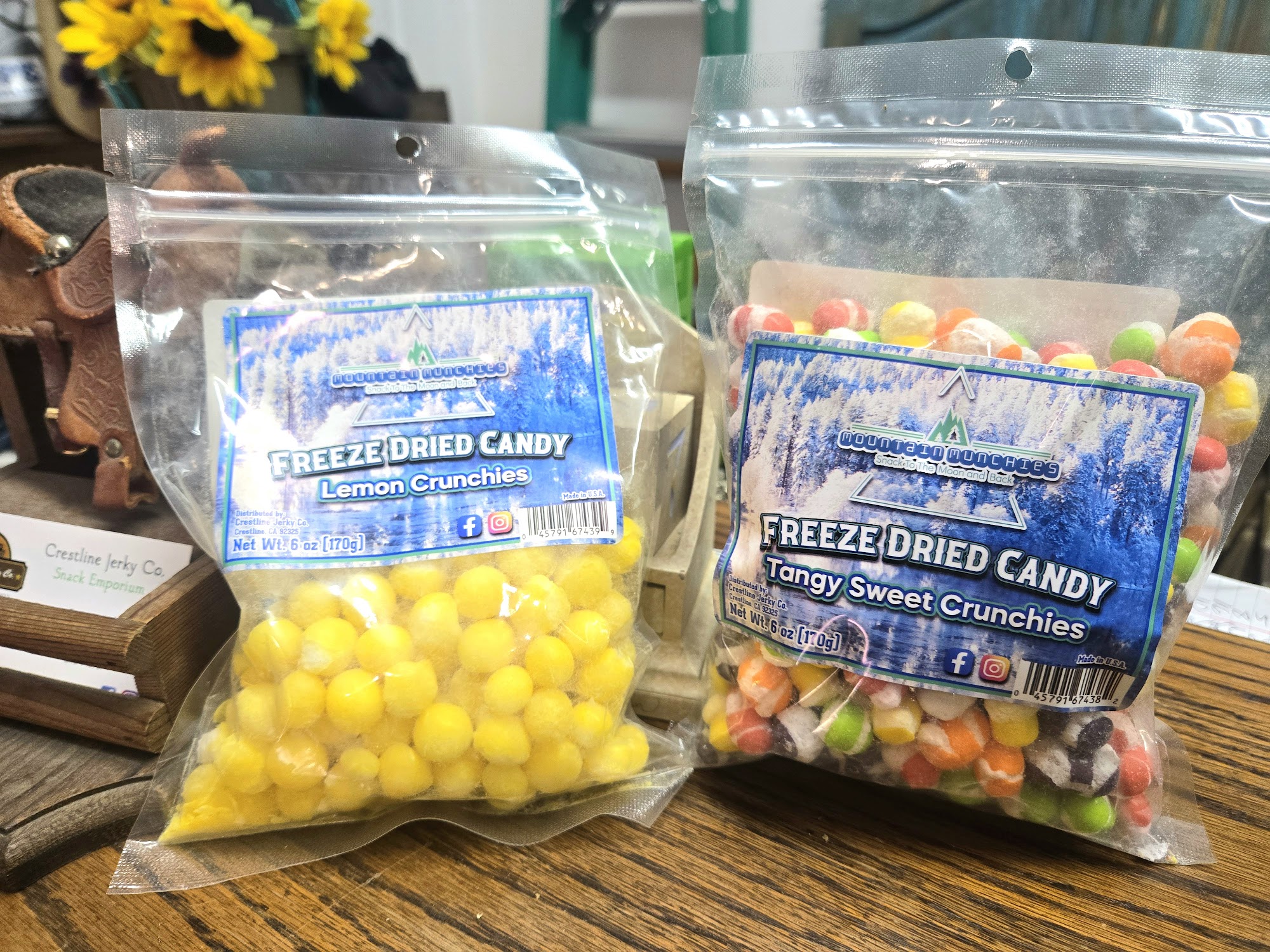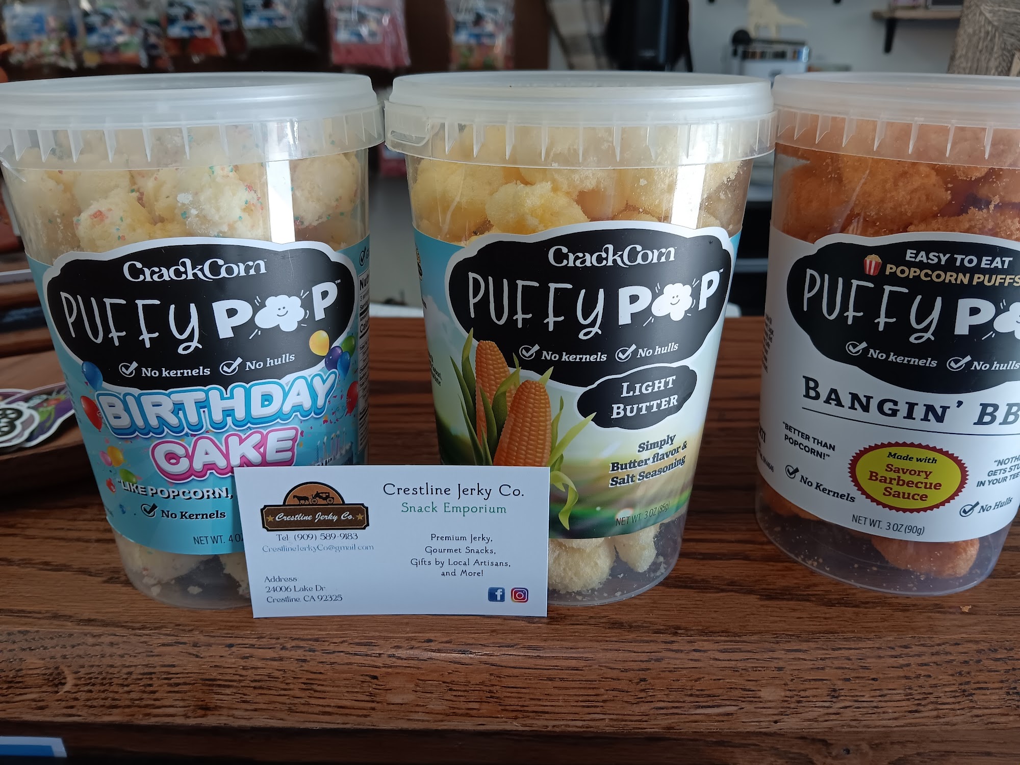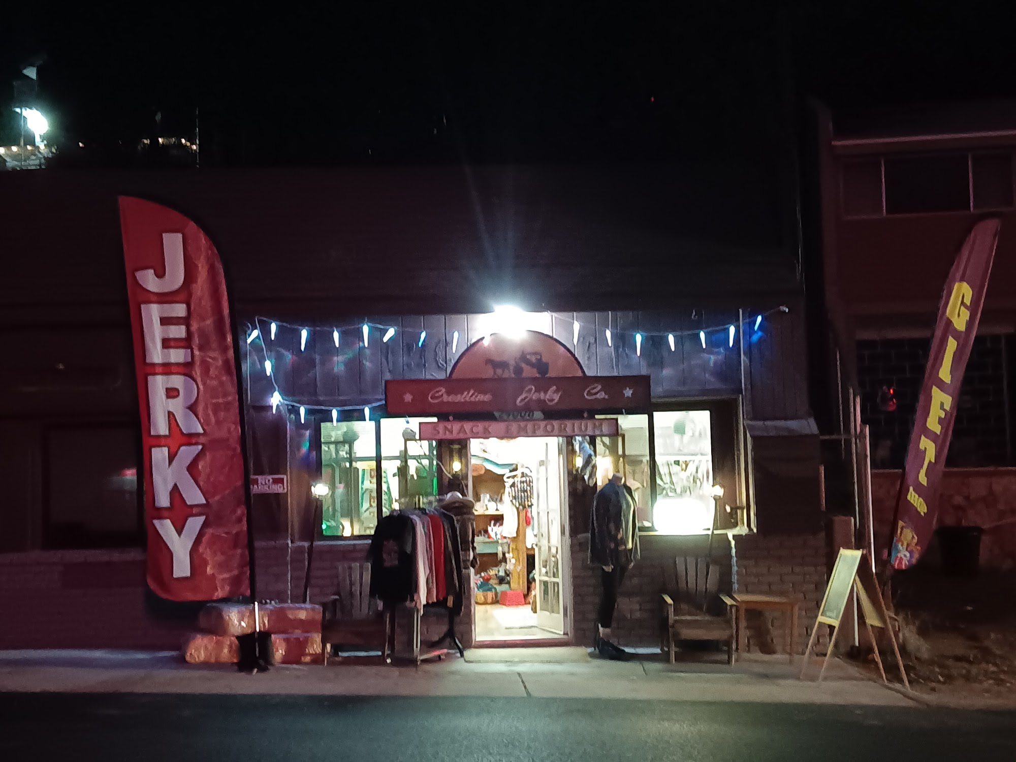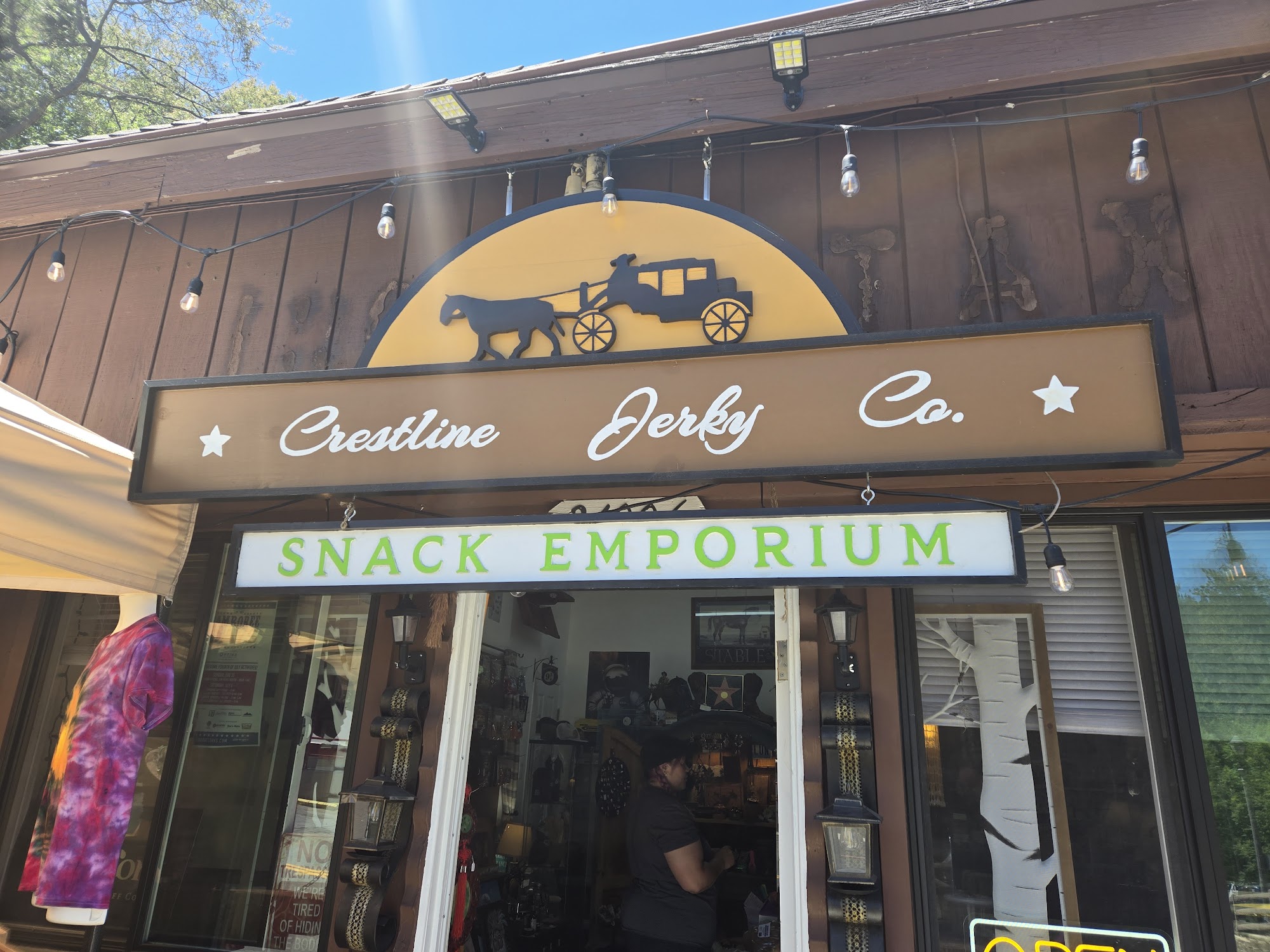 Crestline Jerky Co. is a great little shop on Lake Drive in Crestline, California. It is an awesome place to find some of the world's best beef jerky, with many options and variety flavors that are really good, tender, and tasteful. The shop also has more than just snacks, offering road trip snacks and treats like watermelon sour strips. The owners are a nice, kind, sweet, and delightful young couple who are a hoot to talk to and know their stuff. It is a sweet little place beyond compare for munchies and jerky.