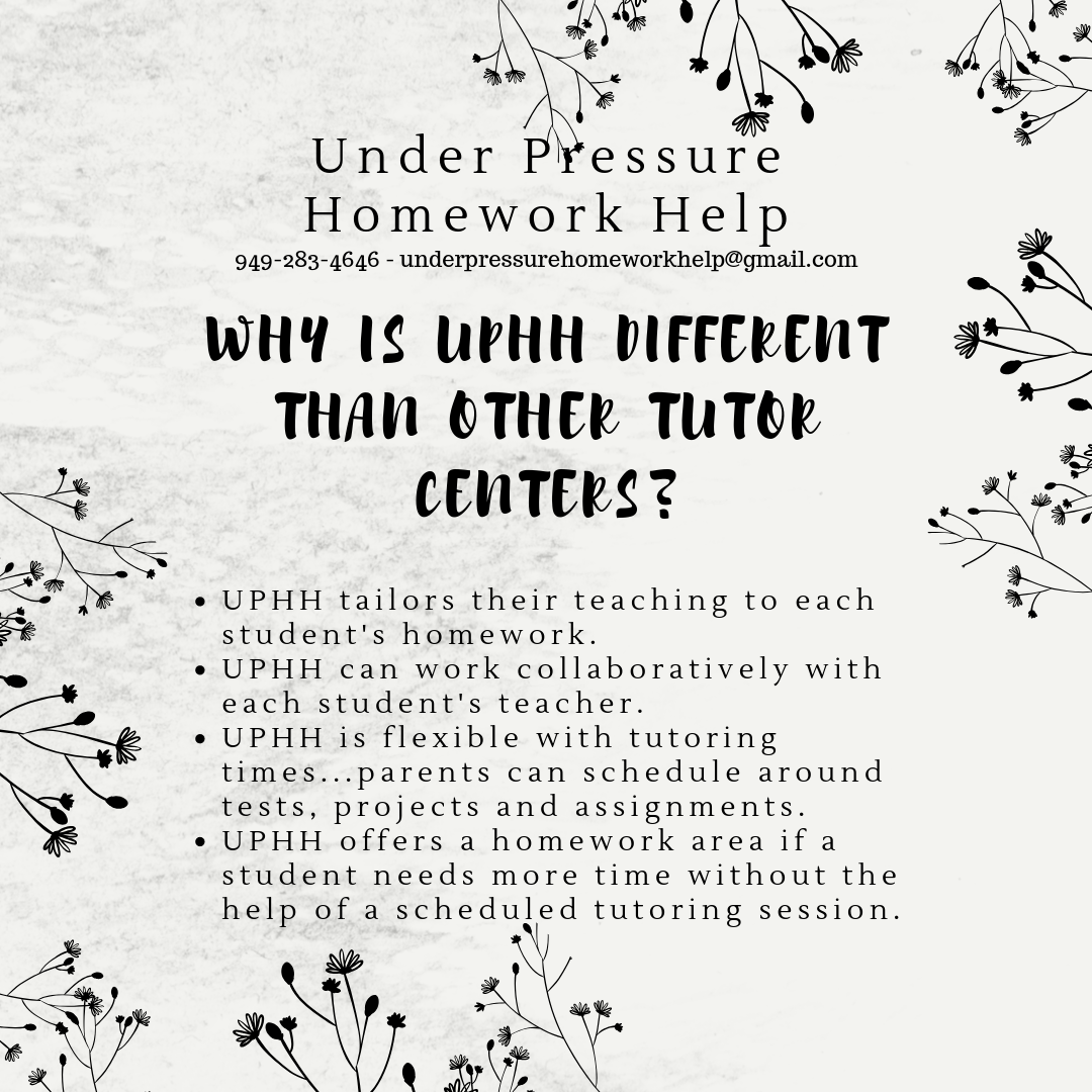 Under Pressure Homework Help (UPHH) is a leading concierge homeschool and tutoring center situated in South Orange County, CA. The center focuses on providing personalized academic support that goes beyond typical tutoring. Students receive dedicated guidance that boosts their understanding of subjects while also fostering important organizational and study skills. Reviews highlight that UPHH has significantly reduced academic pressure for students, with many feeling happier and more confident in their abilities. Parents appreciate the effectiveness of the tutors, who are described as extremely helpful and easy to work with. The atmosphere is supportive and nurturing, allowing children to thrive both academically and personally. One parent noted the unique approach of combining tutoring with organizational coaching, which has been beneficial for their child. UPHH has proven especially effective for students who require more individual attention, as many have transitioned from other tutoring options to find success here. The center is praised for creating a comfortable space where students can ask questions freely and develop a genuine love for learning. With a positive environment and the added bonus of snacks, UPHH is highly recommended by parents for its transformative educational experience.
