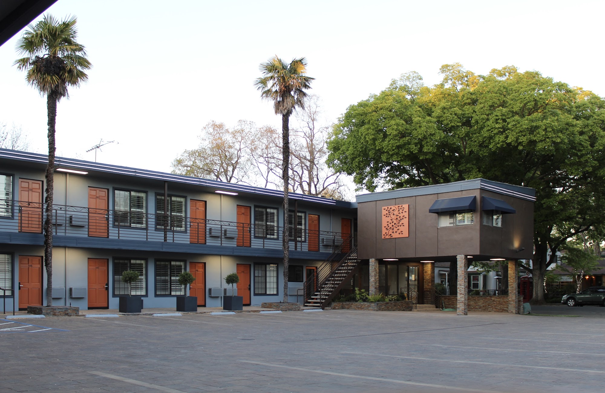The Vine Inn Davis is a nice motel in a great, central location right in downtown Davis. It offers a convenient and walkable area close to coffee, food, and UC Davis, with easy parking and a safe, secure feel. The rooms are clean, comfortable, and spacious, featuring very comfortable beds. The property is a cute remodel of an older style motel, representing great value. Service experiences vary; there is quick, friendly check-in and check-out, and staff can be really nice and accommodating, as evidenced by a hassle-free refund process. However, service can also be very average, with some communication difficulties noted. The simple, well-stocked breakfast is considered nice for the room price. The rooms are very clean and have all the basics, including eco-friendly toilets, though the shower's little bottles were noted as hard to squeeze. Some noise is present but not terrible, and exterior entry rooms are not overly loud. The nearby Mustard Seed restaurant is amazing. The inn provides a comfortable stay with a great location.
