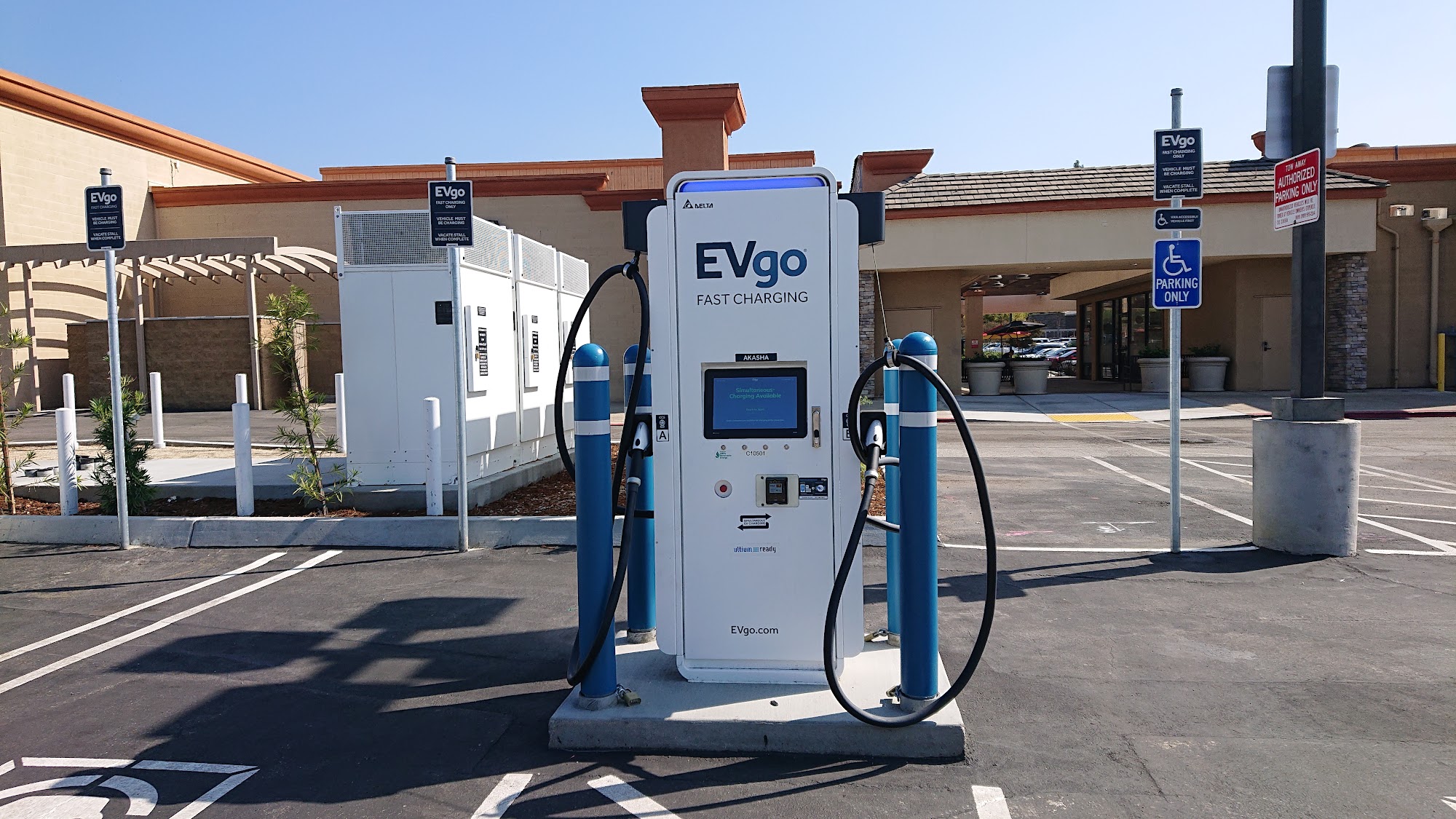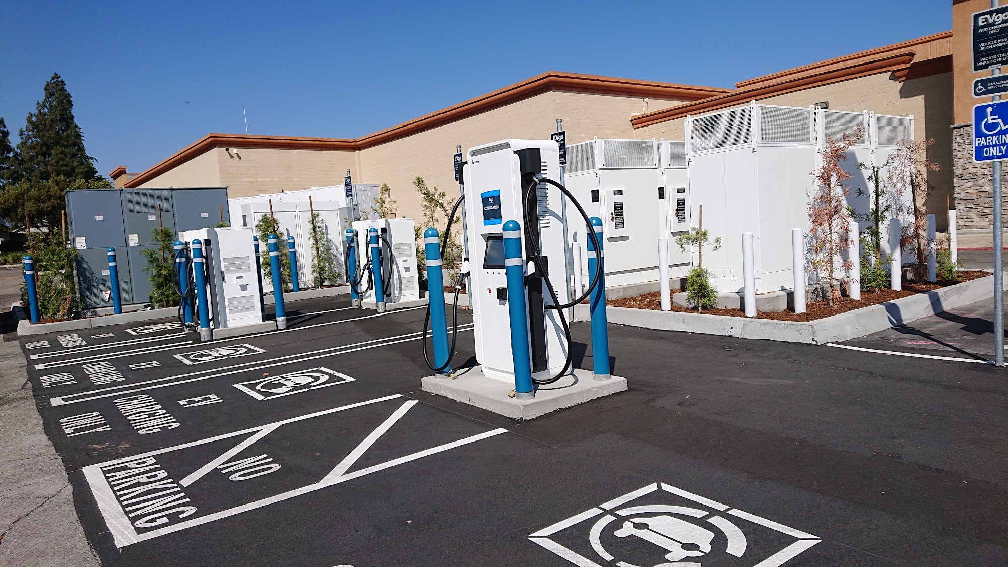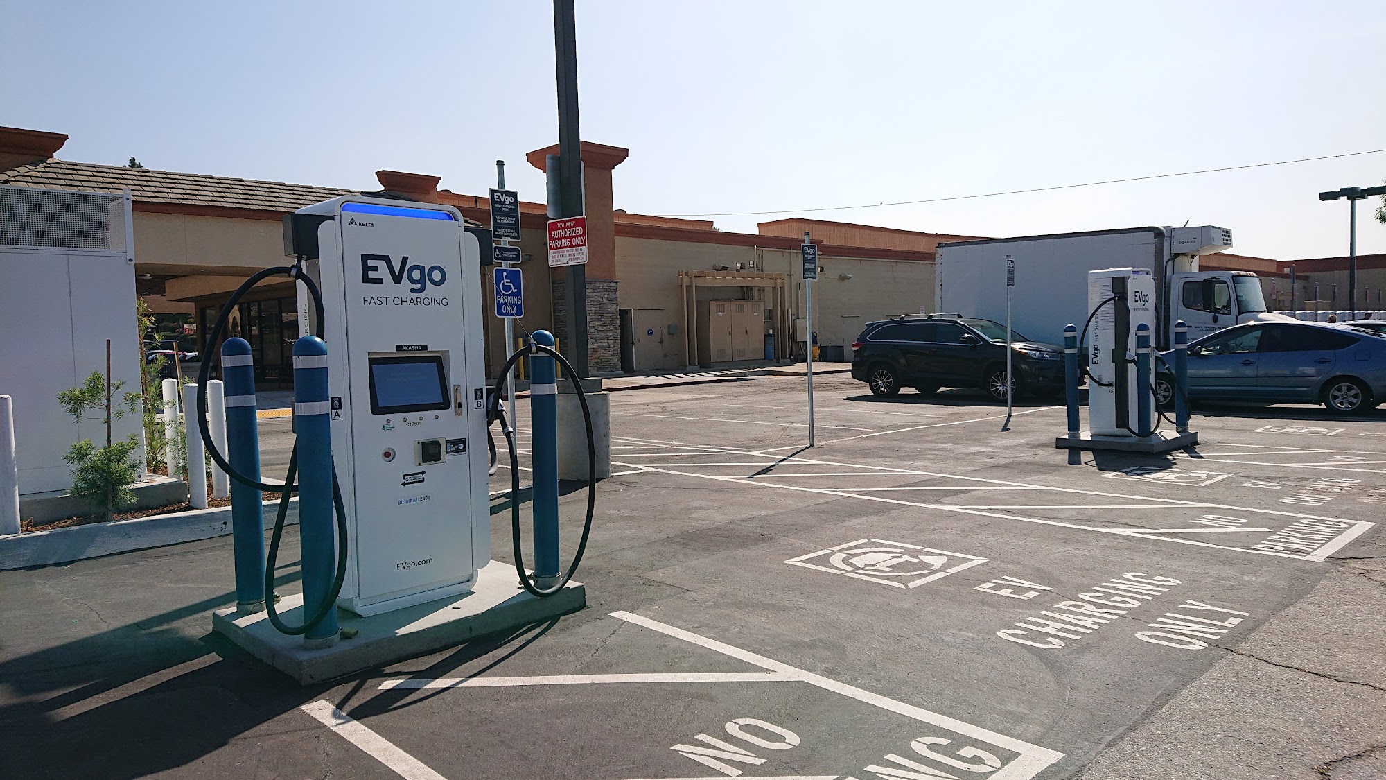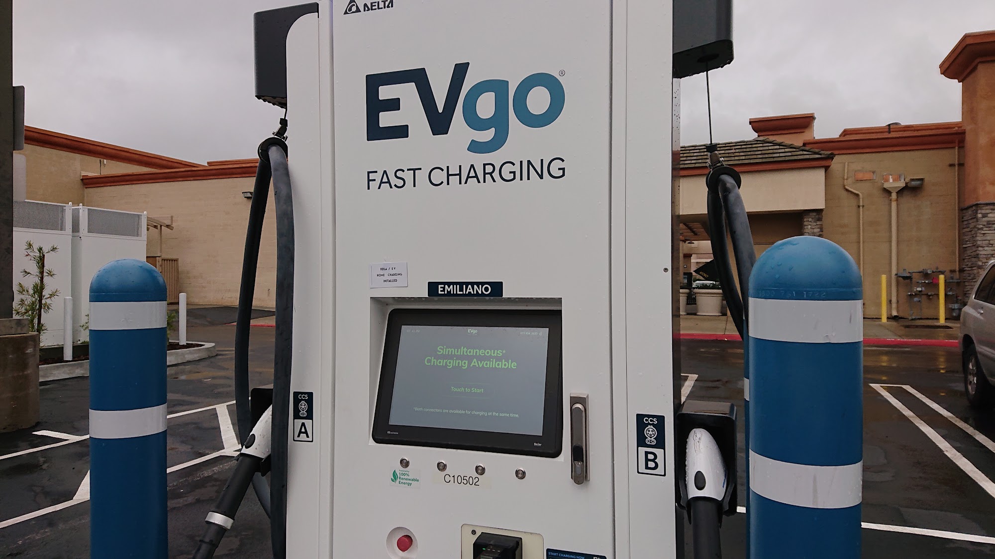 No issue with the charger working. Easy access and it's a nice place to sit. Be aware that the EV go chargers authorize your card for $55, even if you are only spending