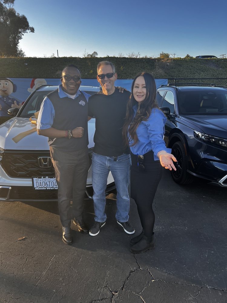 L.A. Honda World offers a wide selection of new Honda models and pre-owned vehicles. Their finance experts work to arrange affordable payments. The dealership also provides all necessary auto services, maintenance, and parts. Customers report exceptional and incredible customer service, describing the staff as helpful, kind, sweet, wonderful, and friendly. Many reviewers express being very happy, impressed, and satisfied with their experience. Staff members are noted for being very helpful, going above and beyond, and taking the time to answer all questions and ensure customers get the best deal possible. They help customers get the car of their dreams and work to resolve any situations, ensuring people leave happy. Multiple reviews strongly recommend this dealership, with some customers stating they will never buy a car anywhere else moving forward.