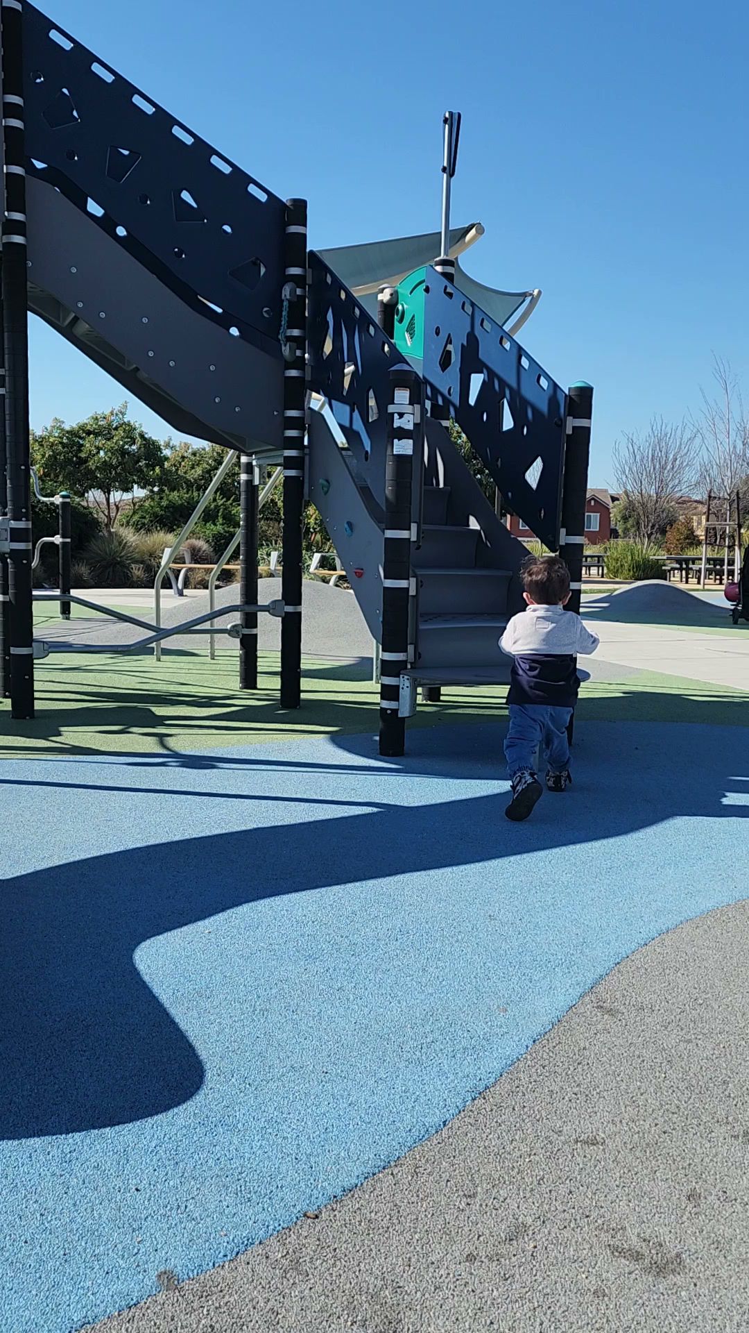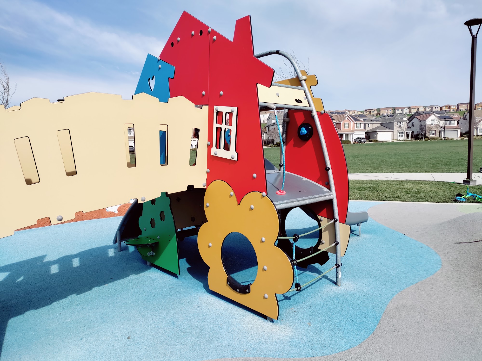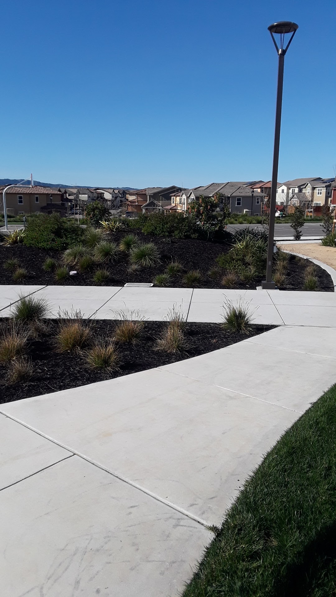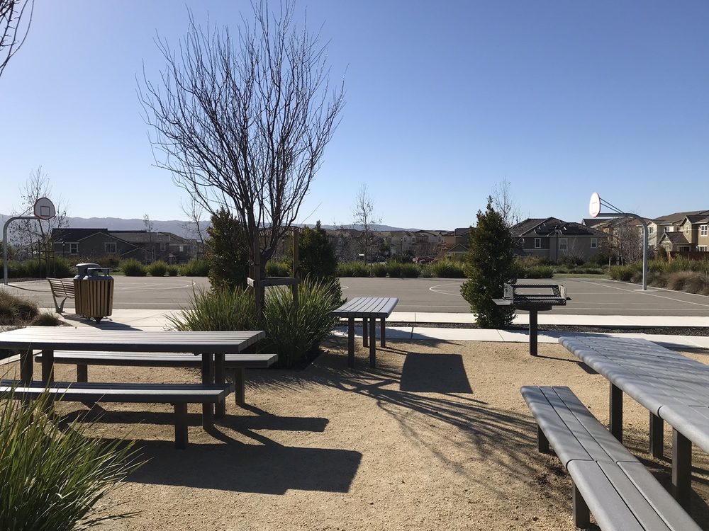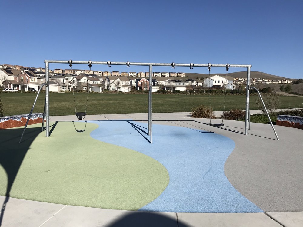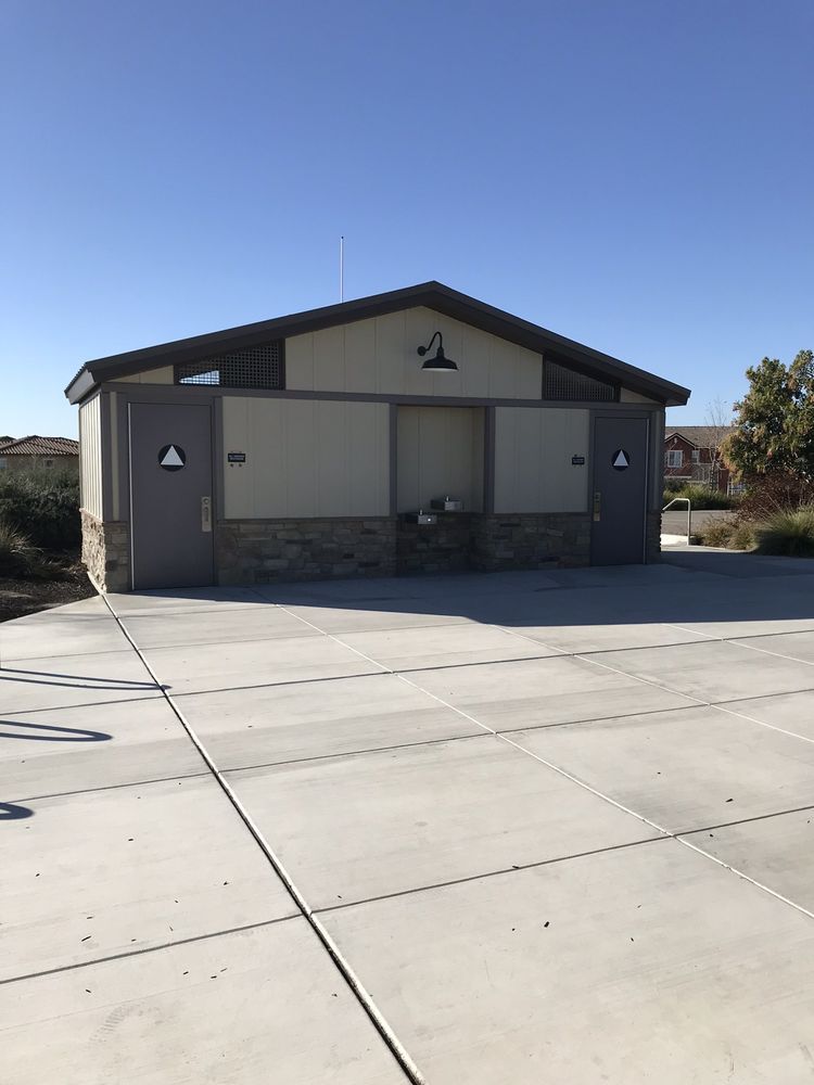 Jordan Ranch Park is a very nice park with multiple play structures for kids, including a toddler area and things for older children. It features a spongy soft surface that is safe for children. The park offers lots of green space, a basketball court, swings, and several walking trails with gentle elevation ideal for a jog or walk. It includes restrooms and a picnic area for gatherings. The park is well-maintained and offers a stunning view of the area. It is a perfect spot for families to have fun.