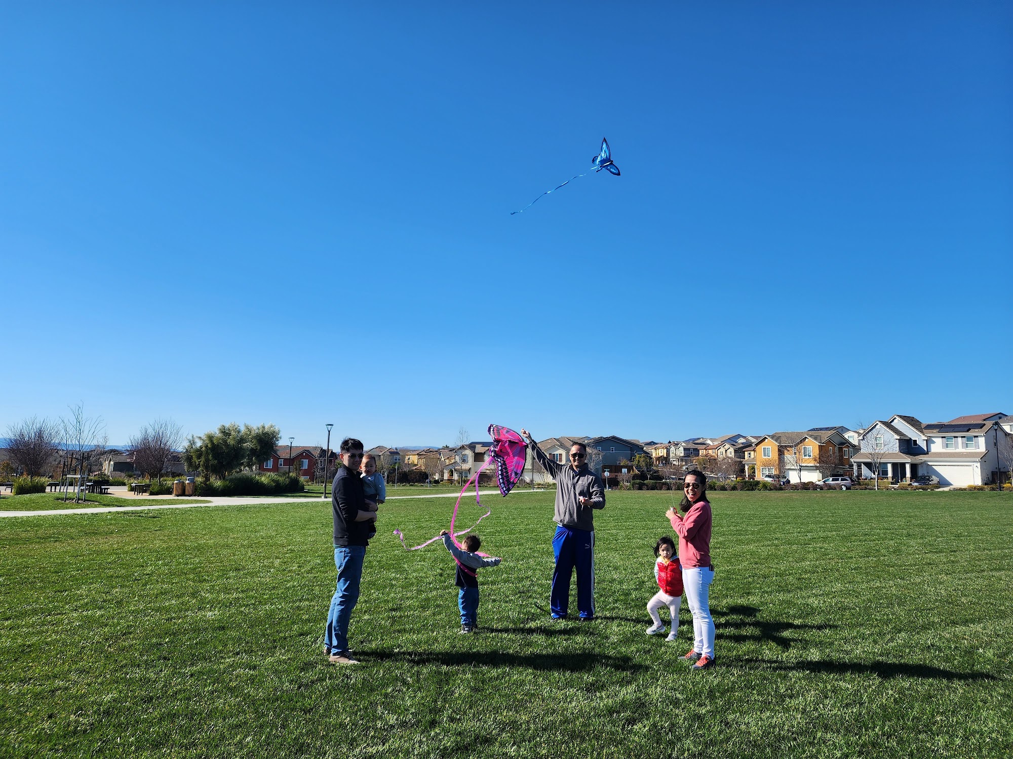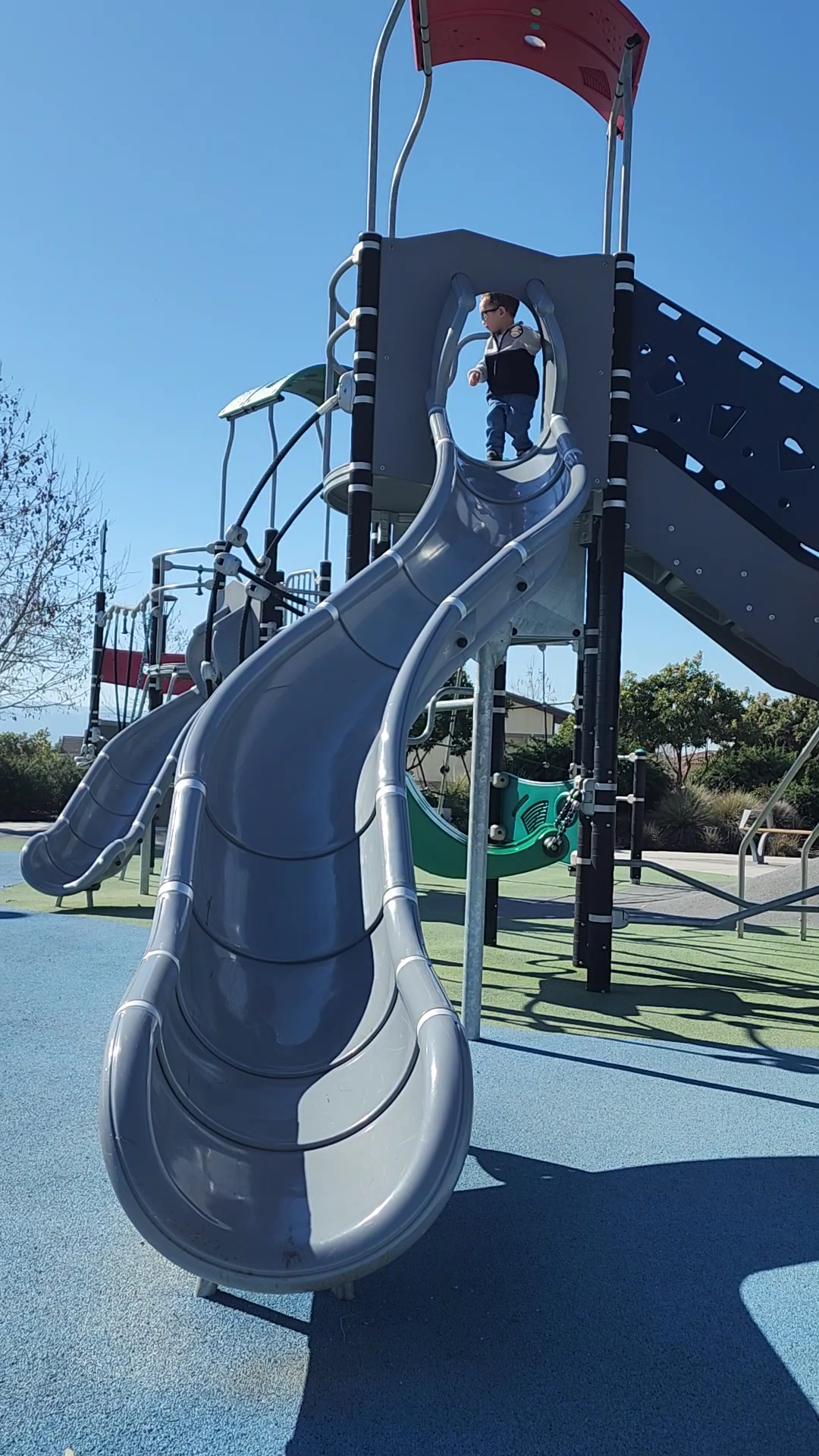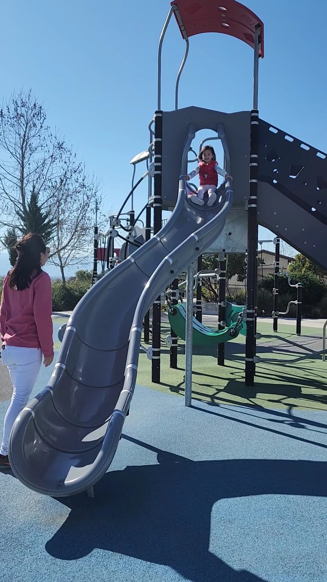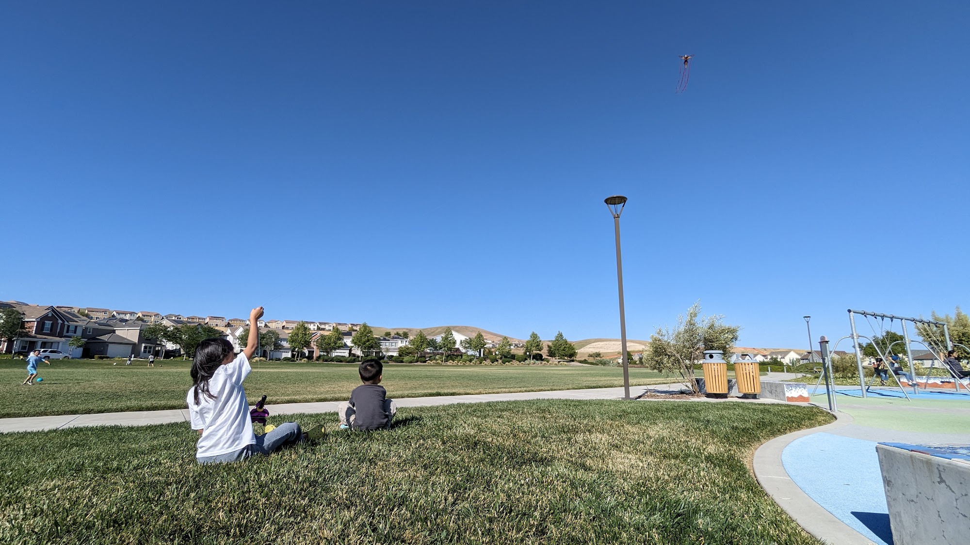 Jordan Ranch Park is a very nice park with multiple play structures for kids, including a toddler area and things for older children. It features a spongy soft surface that is safe for children. The park offers lots of green space, a basketball court, swings, and several walking trails with gentle elevation ideal for a jog or walk. It includes restrooms and a picnic area for gatherings. The park is well-maintained and offers a stunning view of the area. It is a perfect spot for families to have fun.