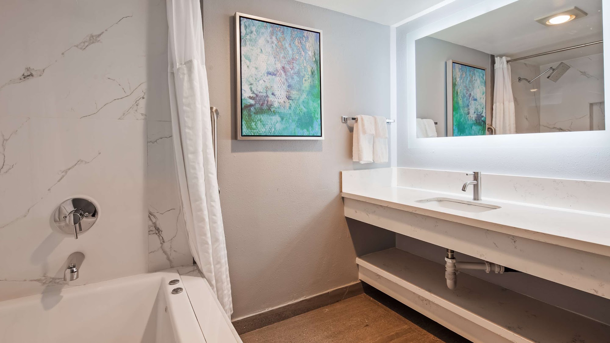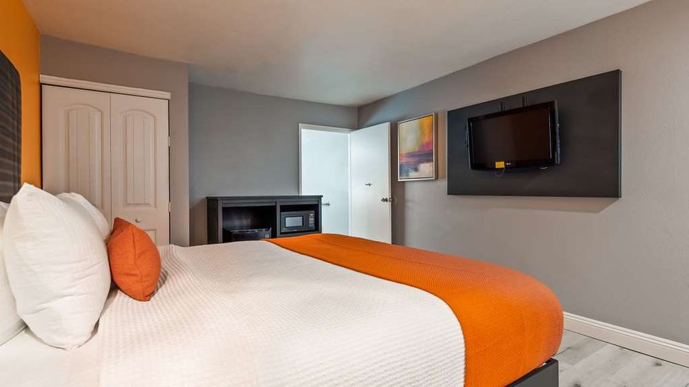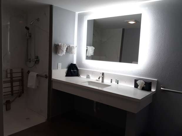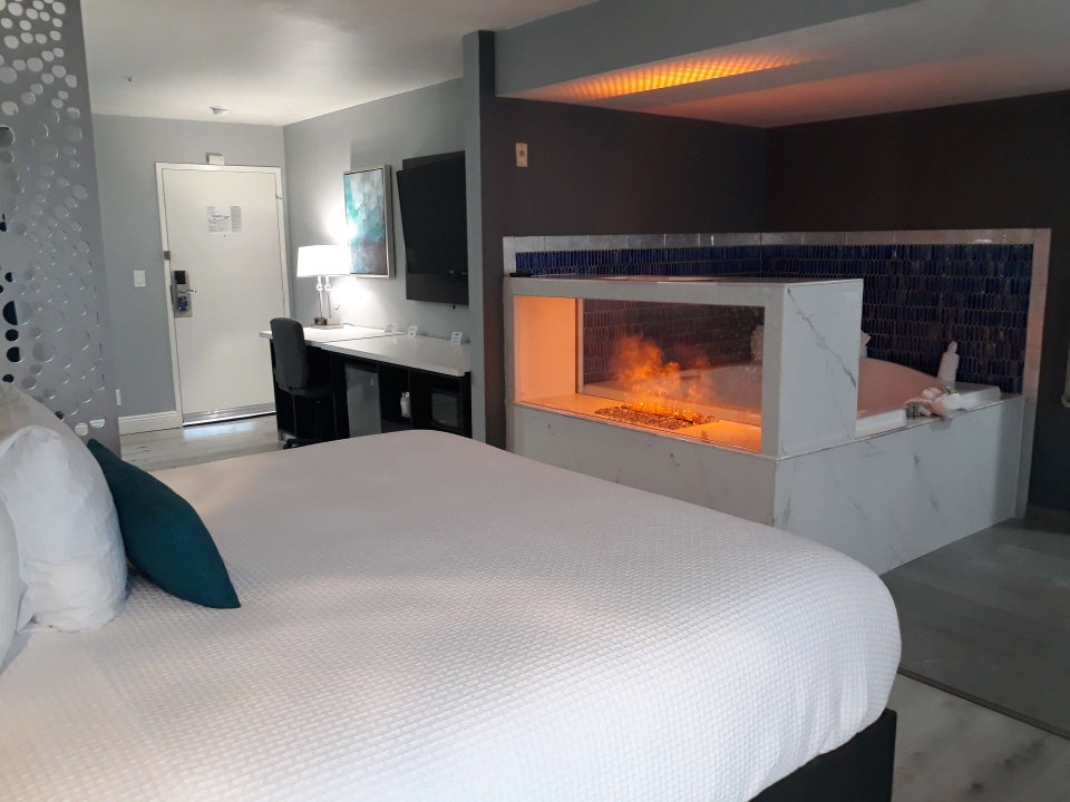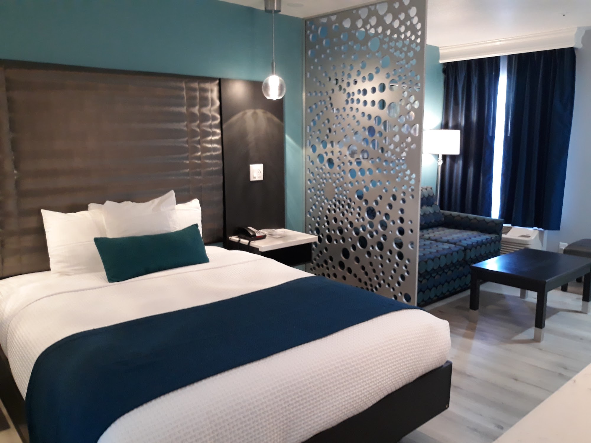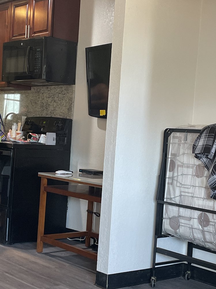 Looks nice, clean. Staff seems friendly. Not their fault it is a Terrible location. People dealing from rooms. Parking lot loud. Internet is also bad.