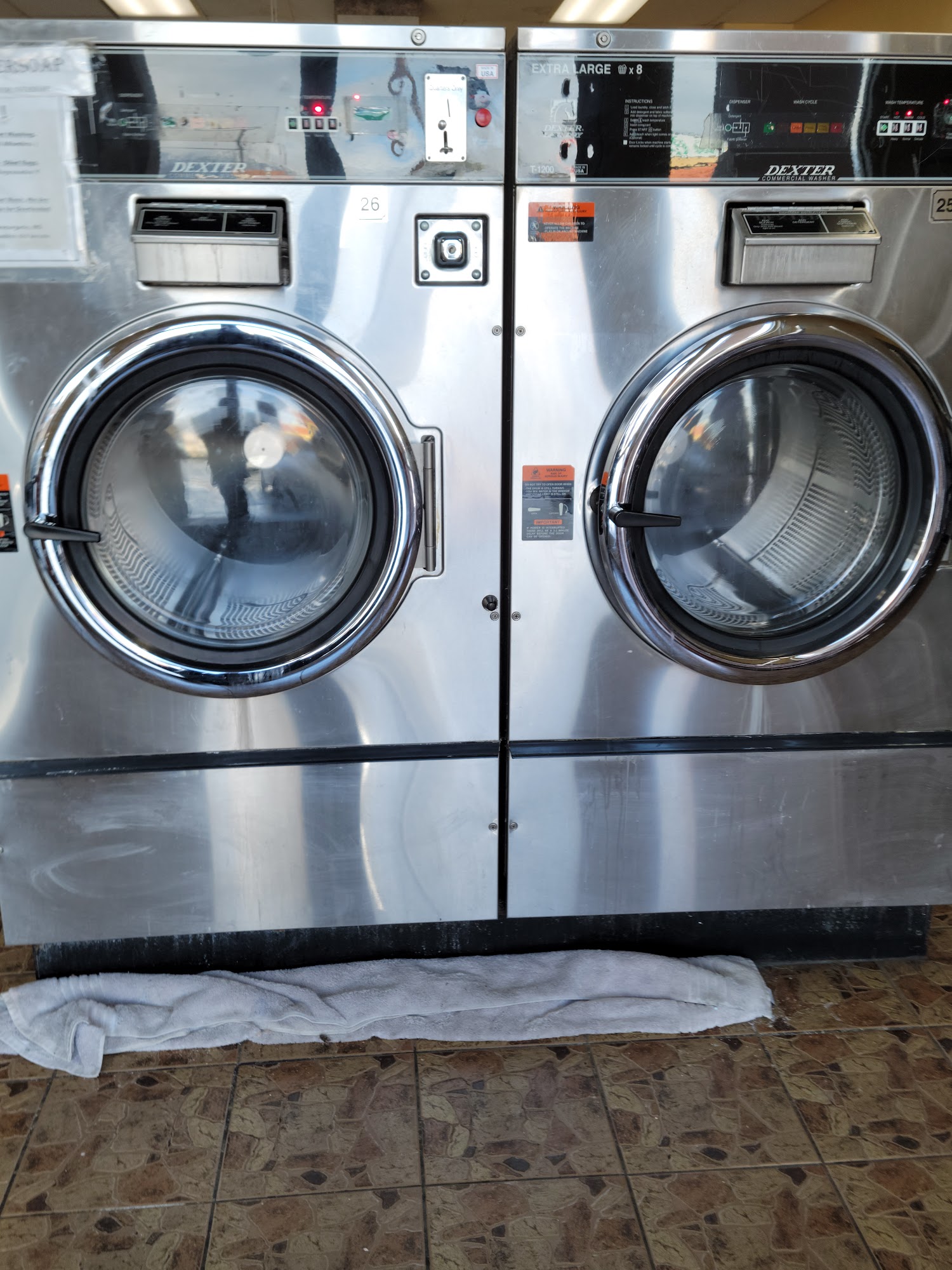 A lot of small washers are out of service. But a clean environment considering the neighborhood it is in.