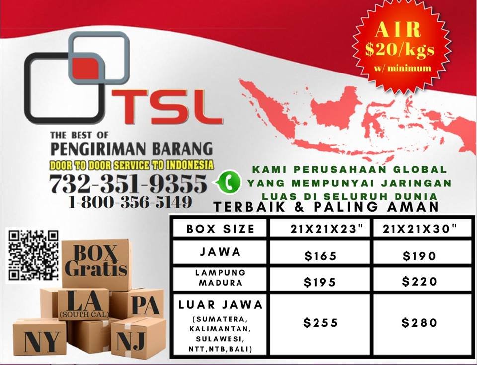 The best shipping company to Indonesia my merchandise arrived safe ....thank you so much TSL keep the good work will be using the service time and time again ....I'm happy customer and yes recommend to all my friends.