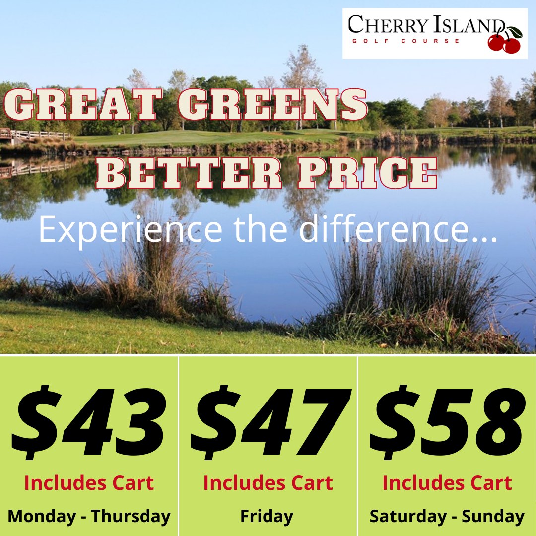 Cherry Island Golf Course is a challenging and fun golf course that is well-maintained and beautiful. The long fairways and lots of hazards make it a pretty tough course, especially for beginners. The ground crew is thoughtful while continuing to improve the facility. The staff is friendly, knowledgeable, and very helpful, with customer service consistently very good. The course handles large events well. While pace of play can sometimes be slow, the overall experience is delightful. The burgers and fries at the 19th hole are sure worth hanging out. Many players love this place and return after their first visit, enjoying it even more as they get to know the course.
