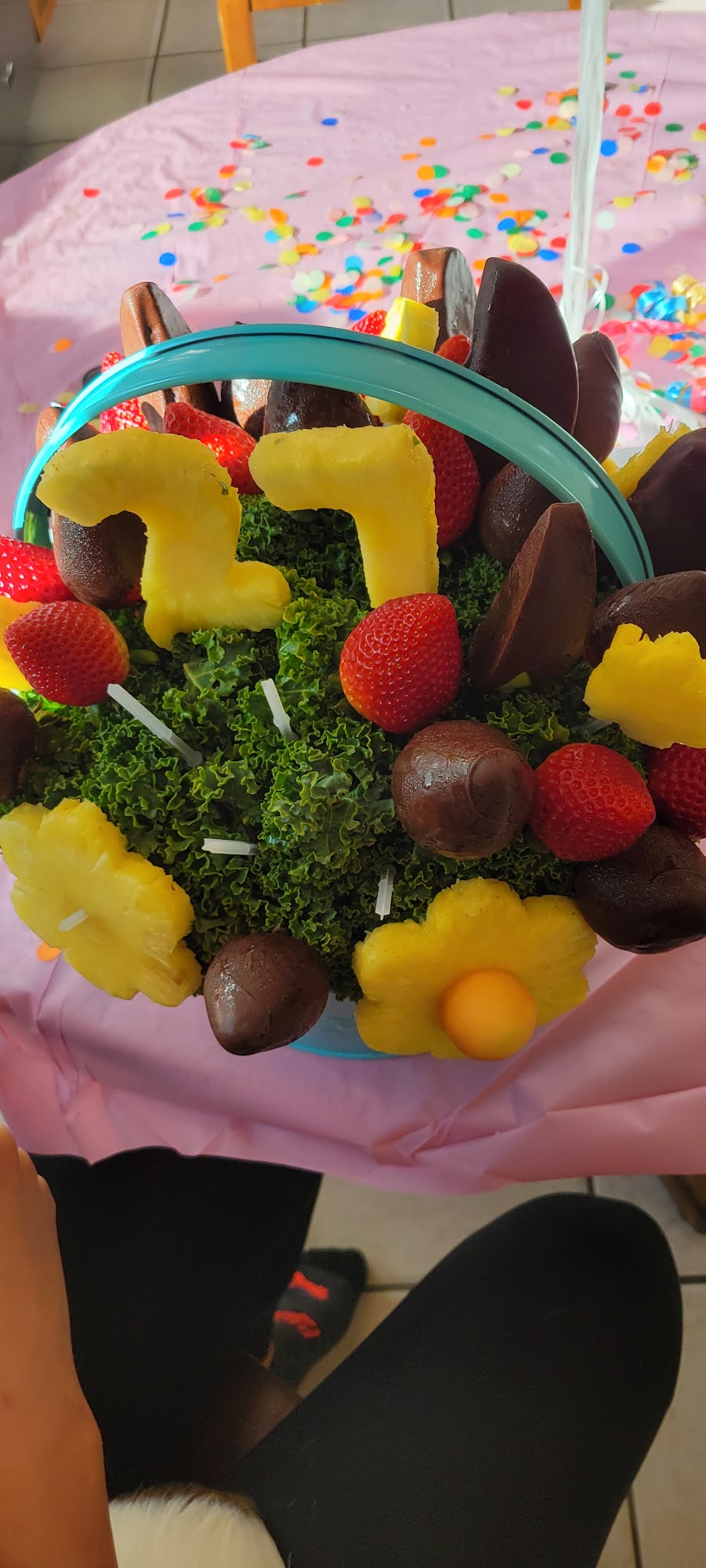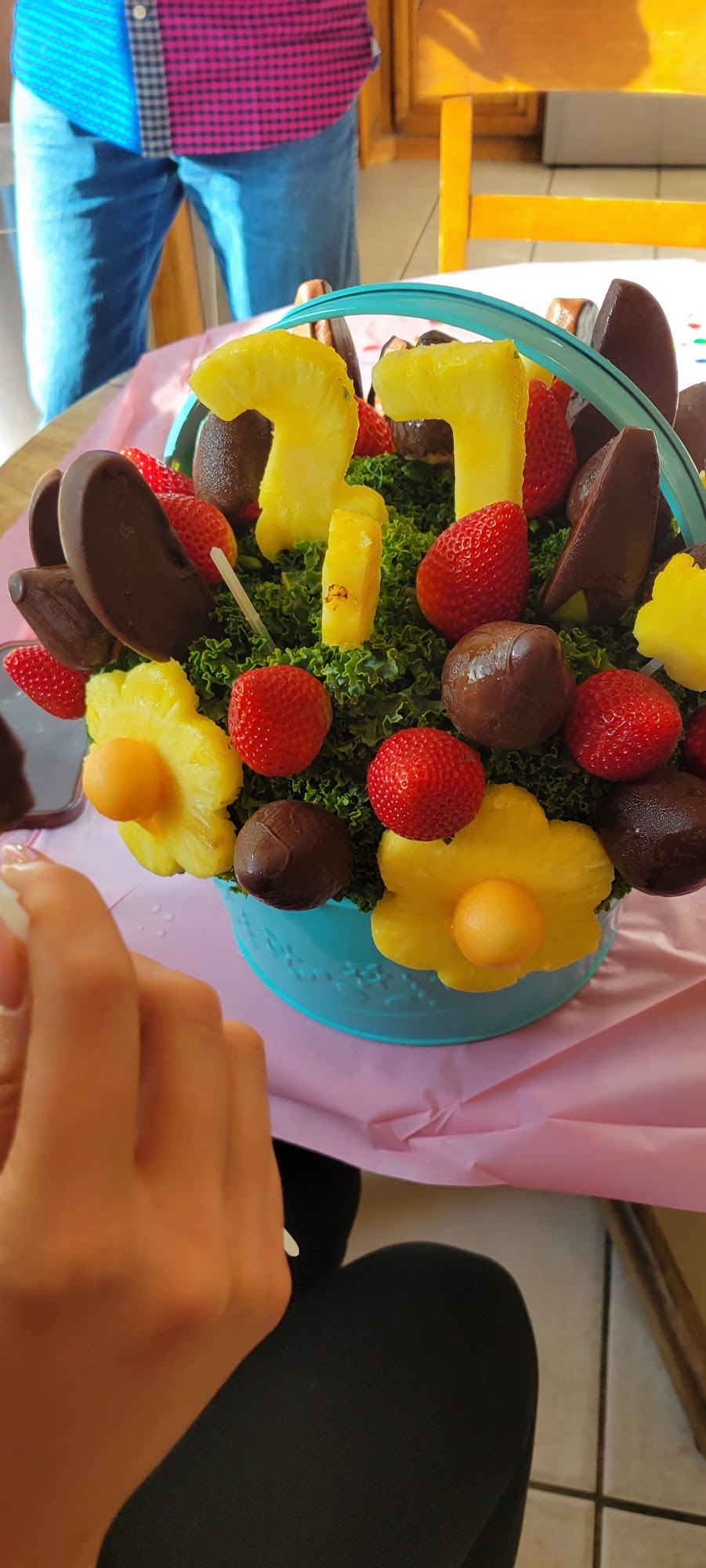 We received Salted Carmel Thanksgiving Daisy arrangement and it was the best arrangement yet!The fruit was so fresh, beautiful and delicious. The salted carmel apples were amazing ! I highly recommend you treat yourself this holiday season:)