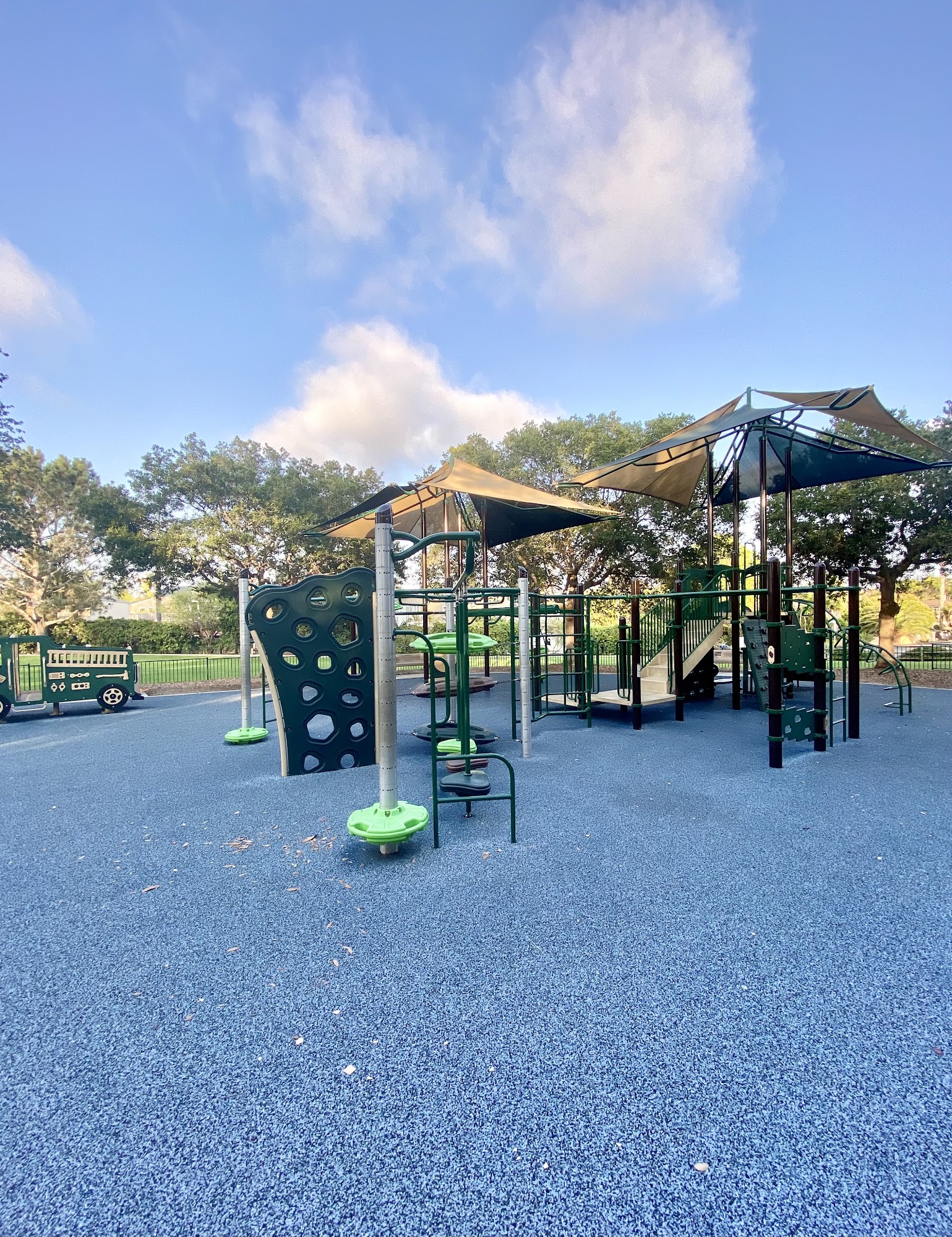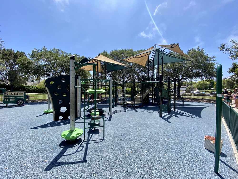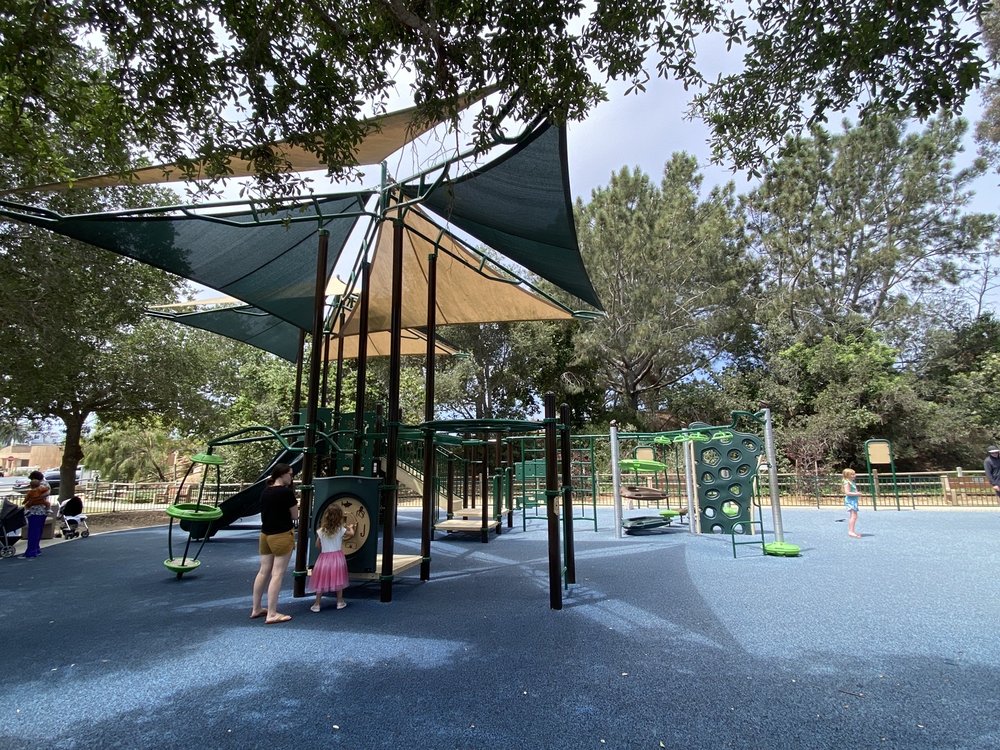 Cute little park with a decent playground. Parking can be difficult if the Library is poppin. The view from the little hill is breathtaking, but so is the smell of dog pee at the playground.